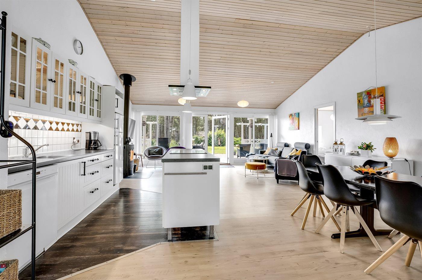 De keuken is uitgerust met koelkast Er is 4 inductiekookplaten, heteluchtoven, magnetron en vaatwasser.