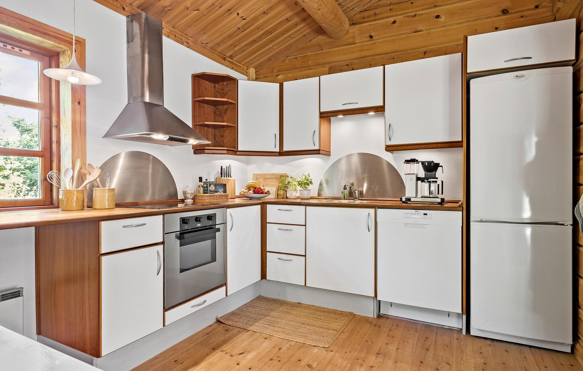 In het huis wacht je een gezellige sfeer. Het woongedeelte met zijn houten muren straalt warmte en gezelligheid uit. Leun achterover en maak het jezelf gemakkelijk voor de open haard. De open eethoek en de praktisch uitgeruste keuken nodigen je uit om avonden samen te koken.