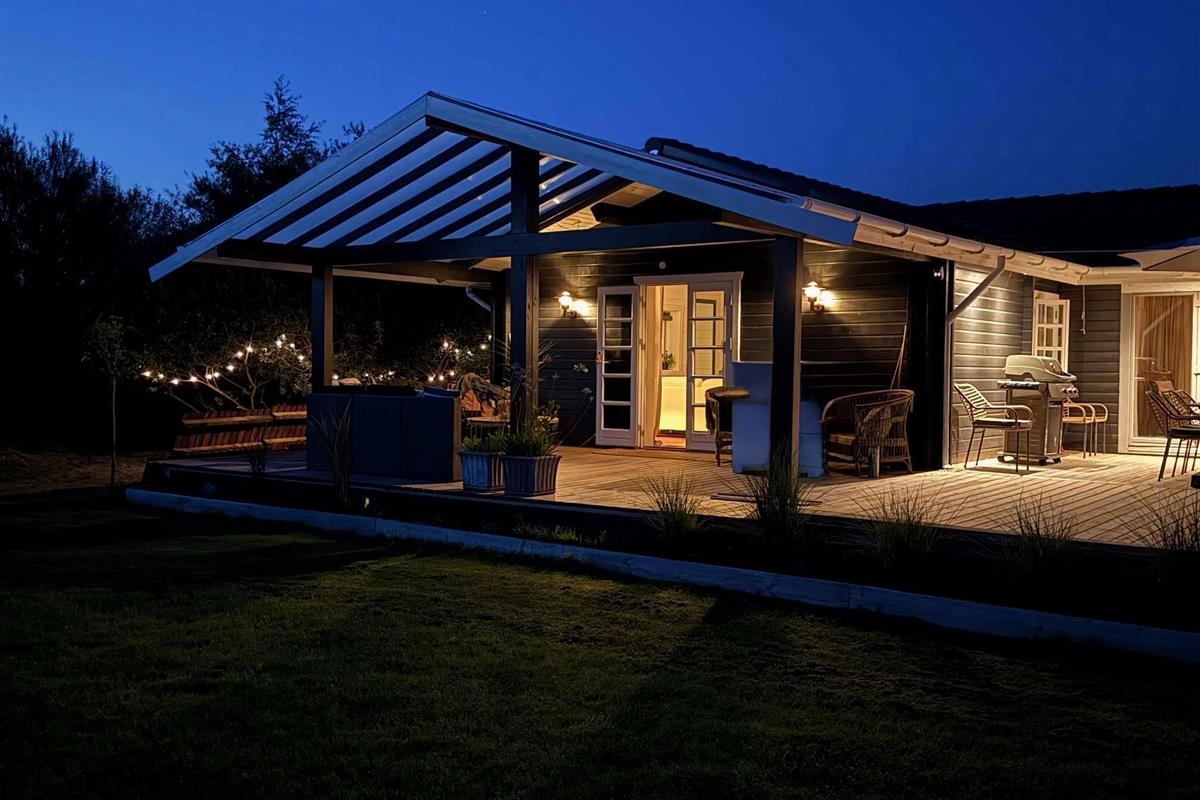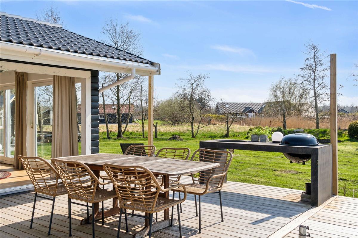 Geniet van een charmant vakantiehuis nabij het beste strand van Denemarken met terras, barbecue en fietsen.