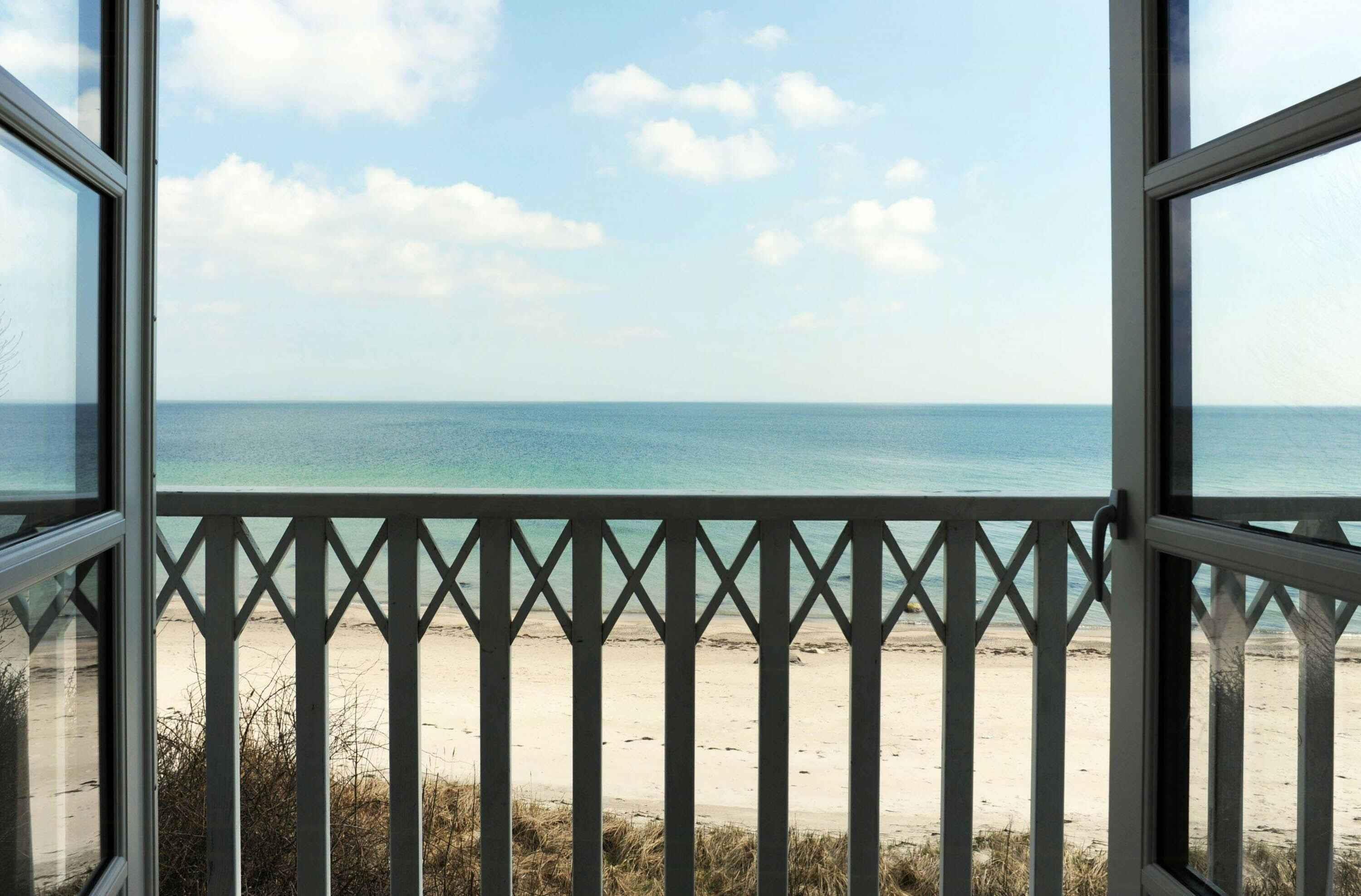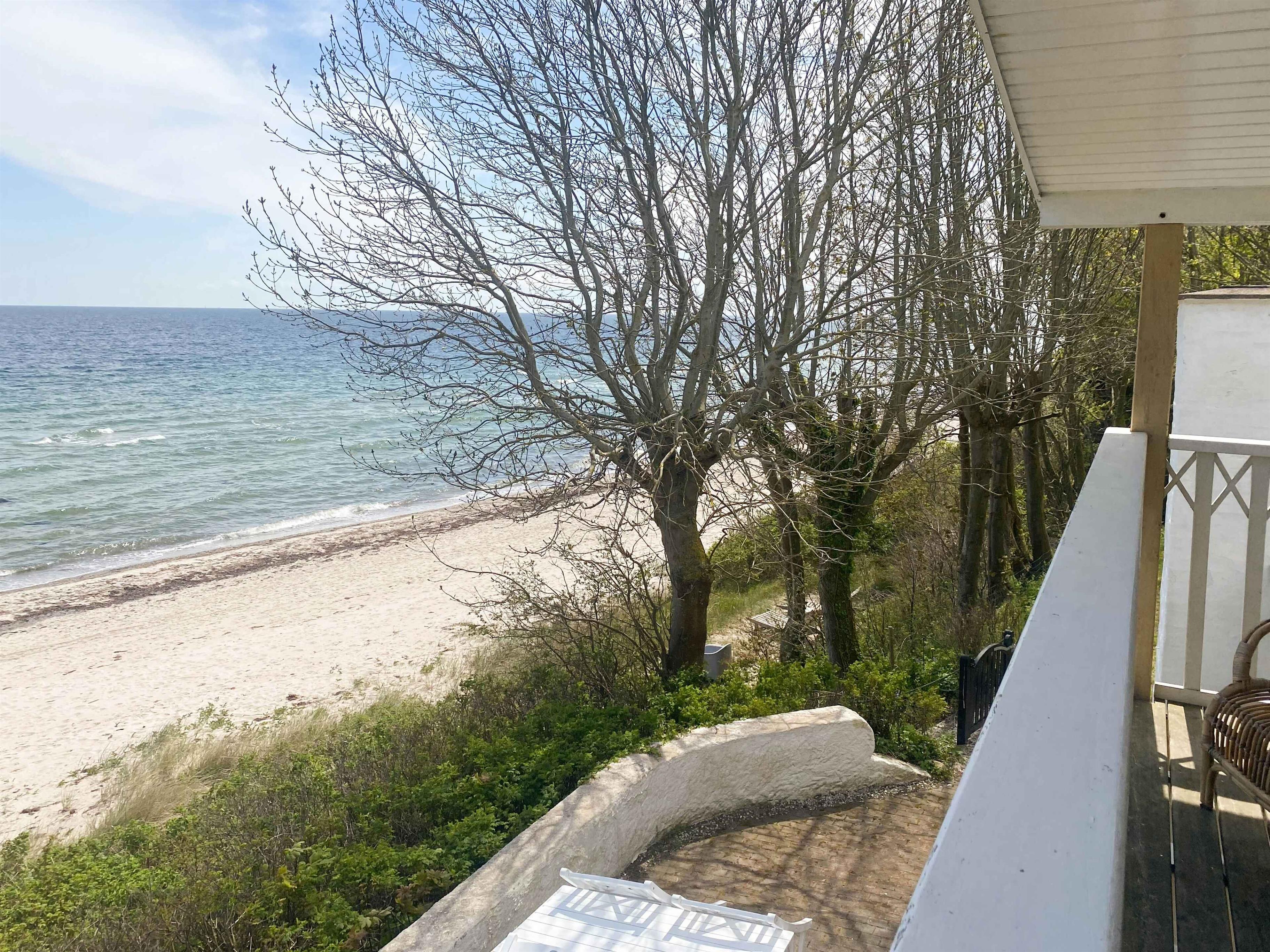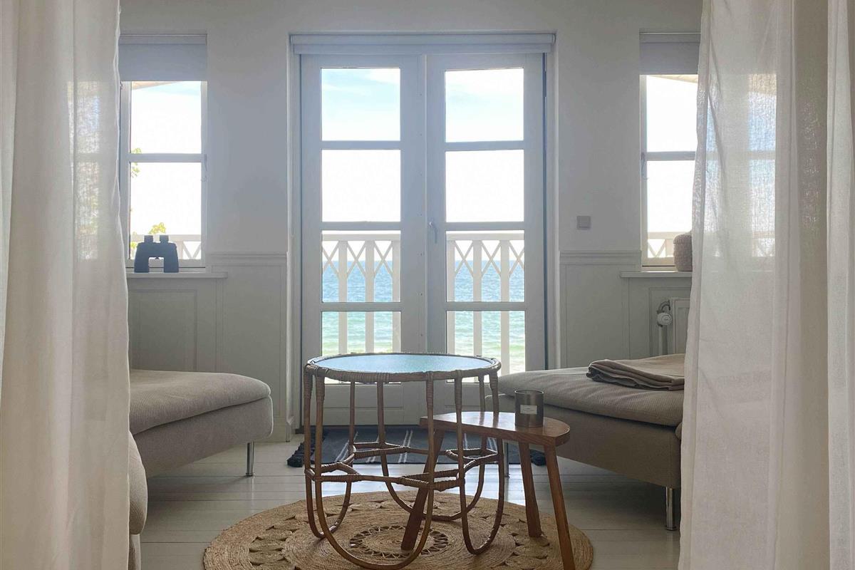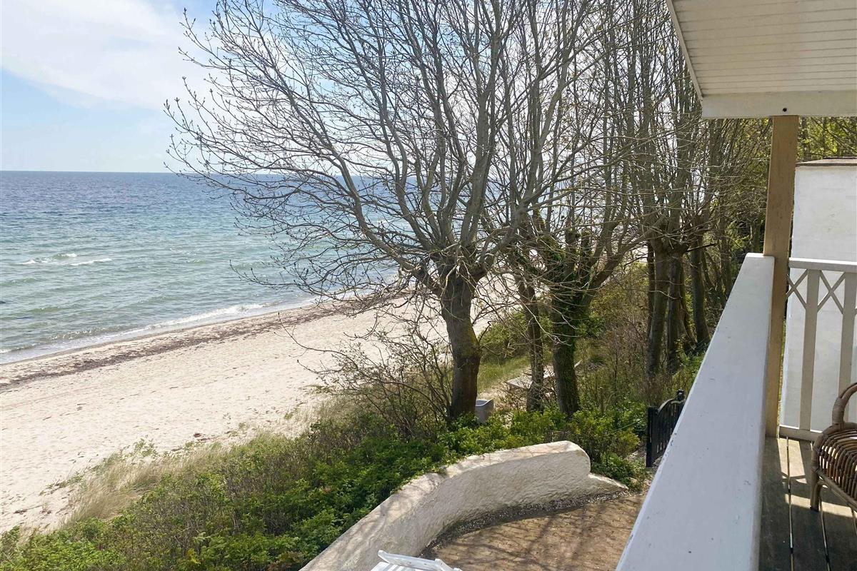 Uniek vakantiehuis aan Ulslev Strand met uitzicht op de Oostzee en klassieke badhotelsfeer.