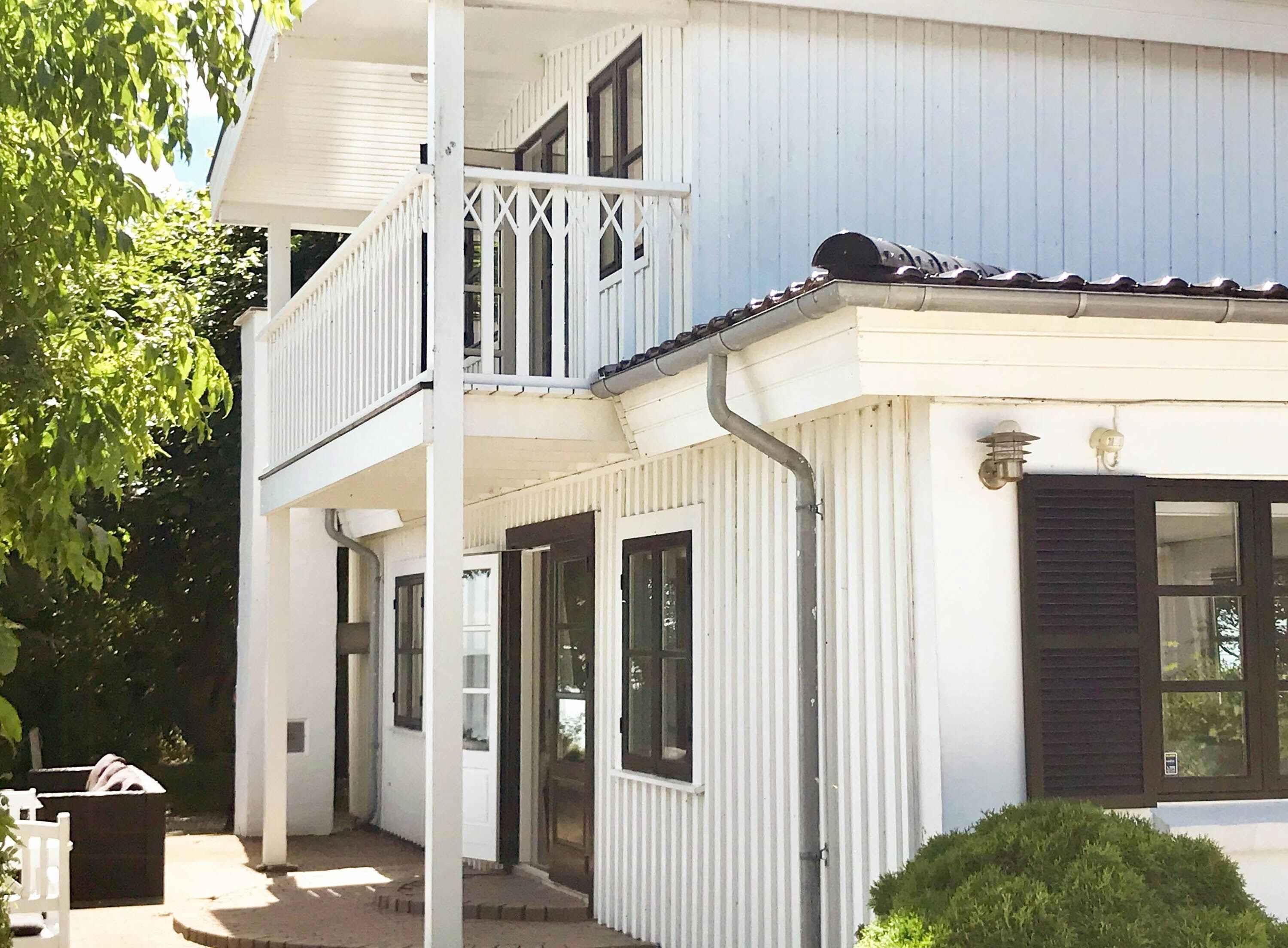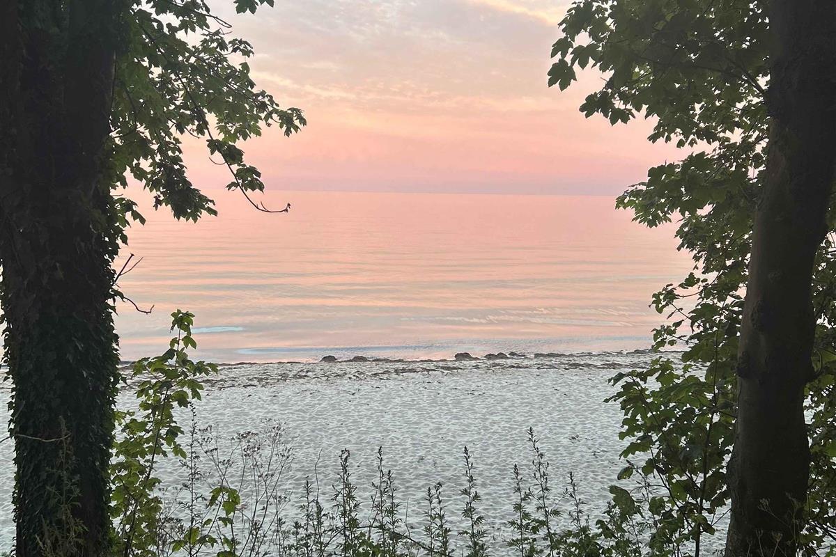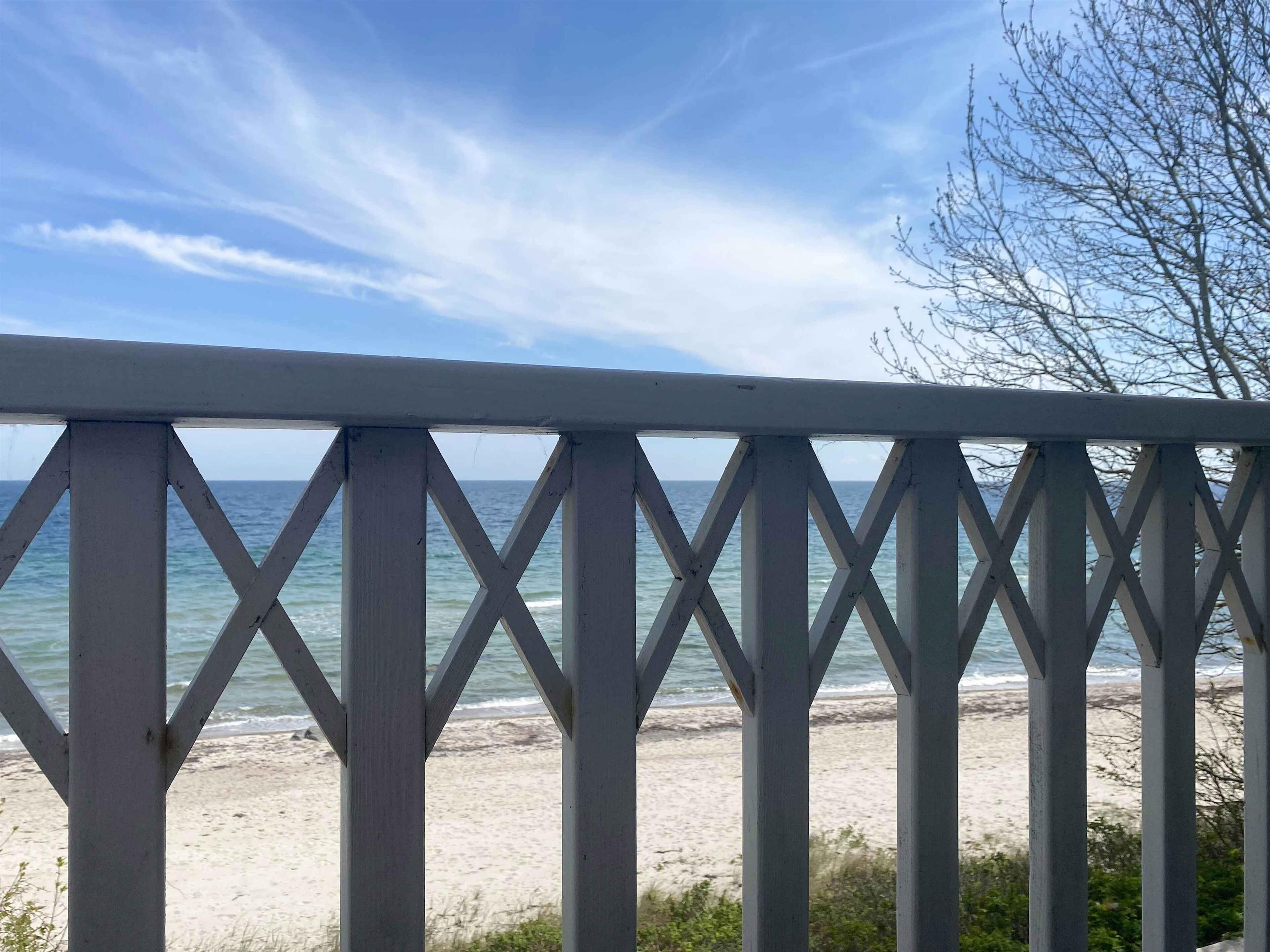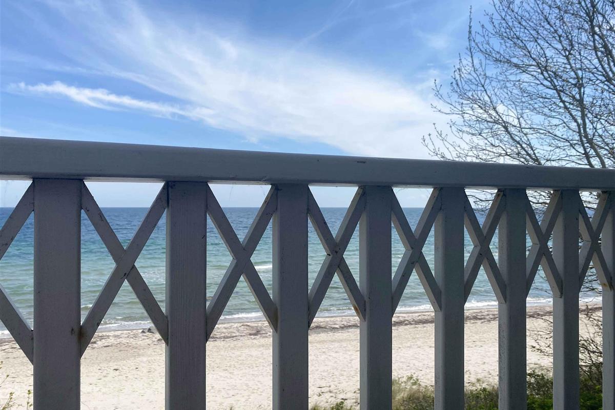 Uniek vakantiehuis aan Ulslev Strand met uitzicht op de Oostzee en klassieke badhotelsfeer.