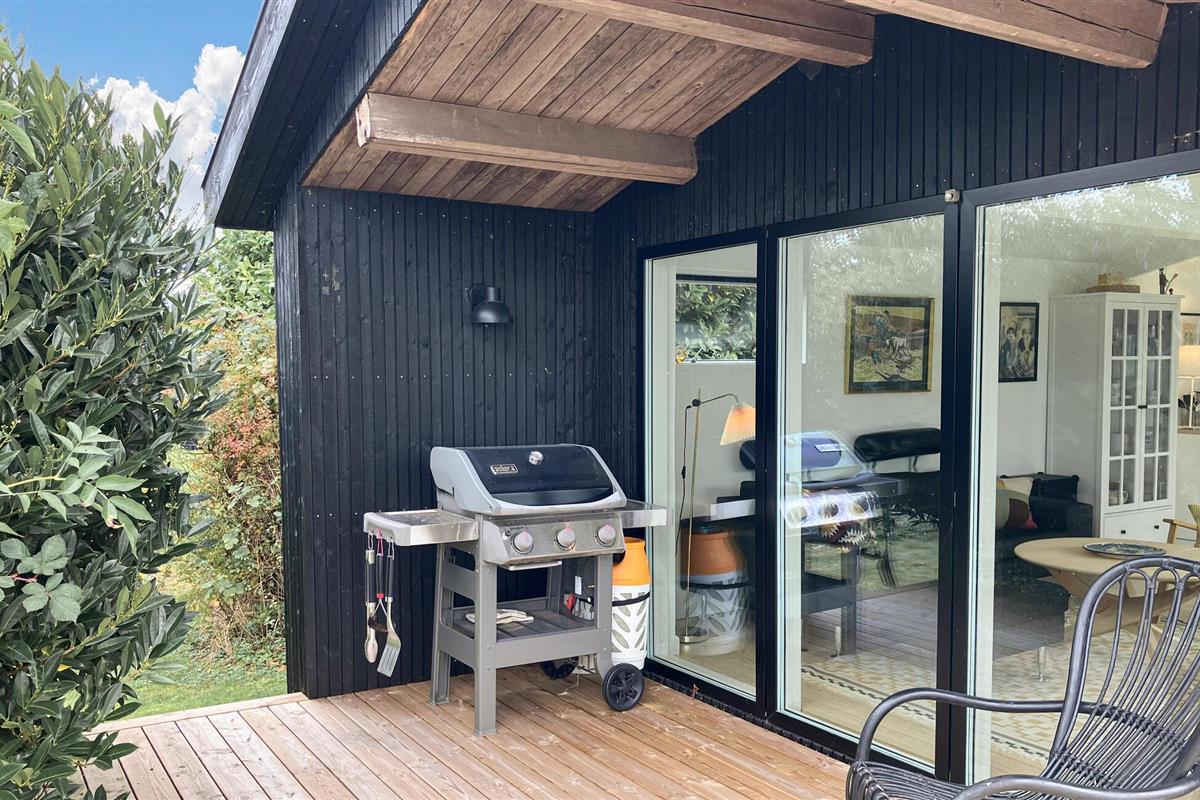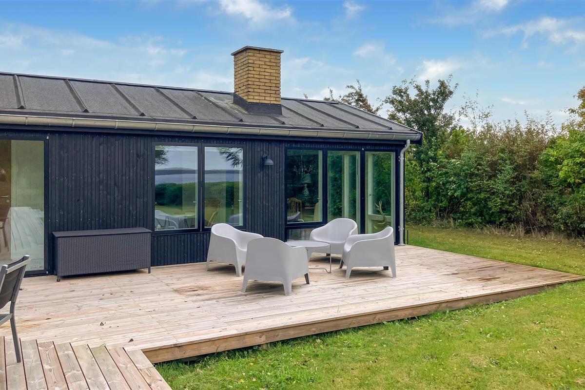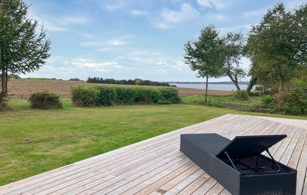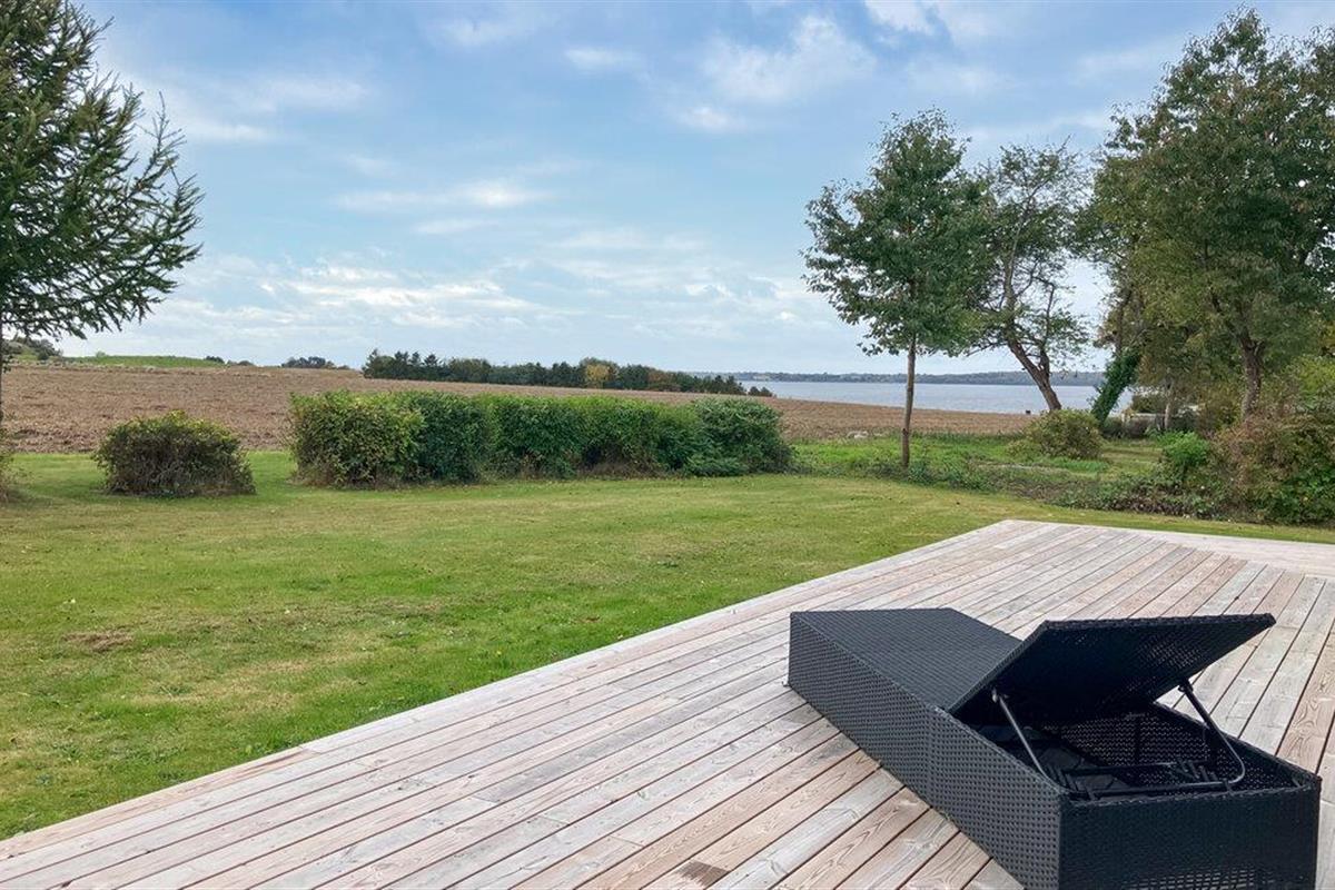 Breng aangename uren door op het grote houten terras, dat zich uitstrekt over de hele voorkant van het huis. Geniet van je vrije vakantietijd met een kopje koffie of ontspan op het tuinmeubilair met uitzicht op het fjord. Barbecue op milde zomeravonden en sluit de dag af in een rustige sfeer. De uitgestrekte tuin biedt ruimte voor spel, beweging en ontspanning.