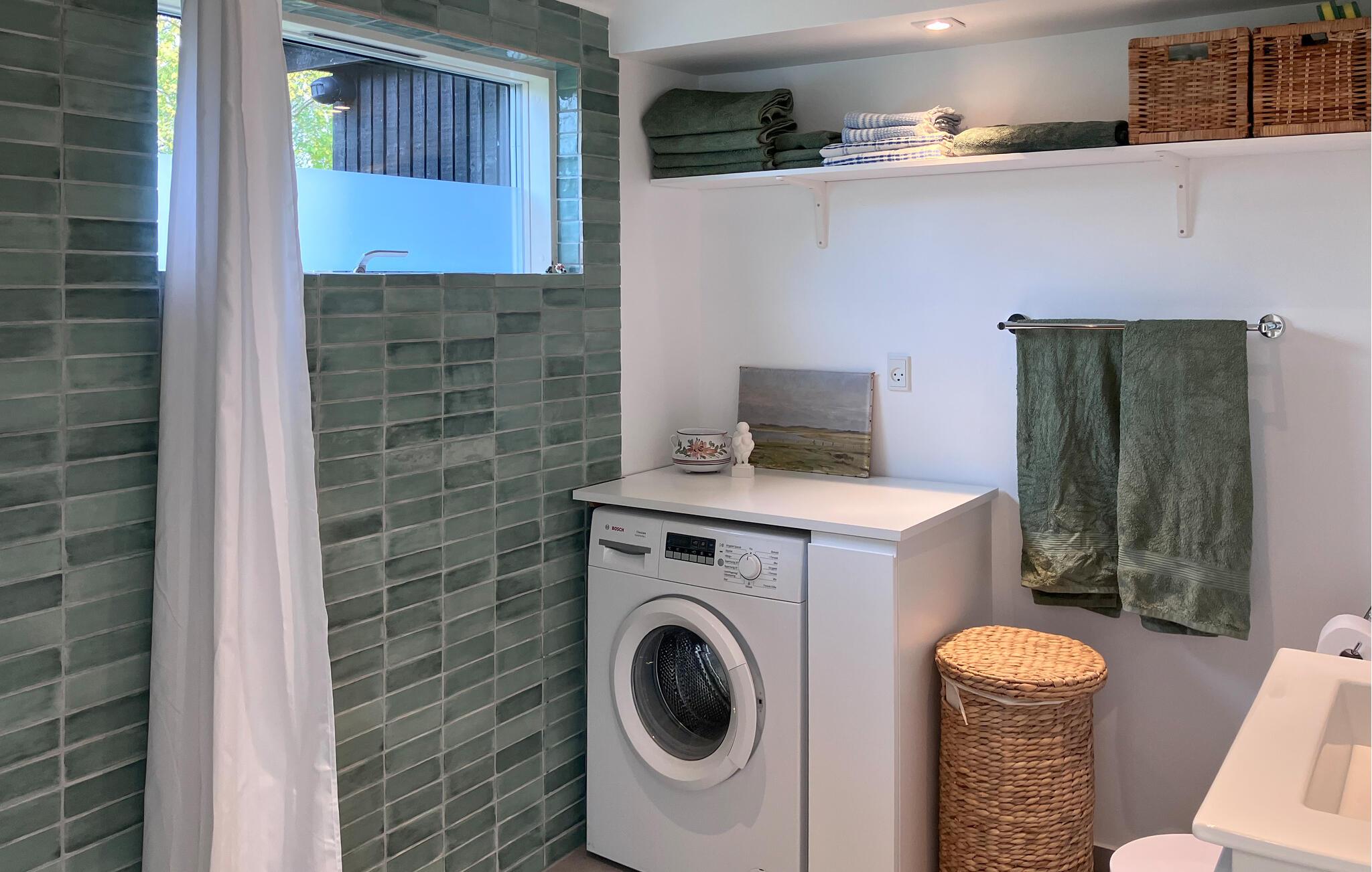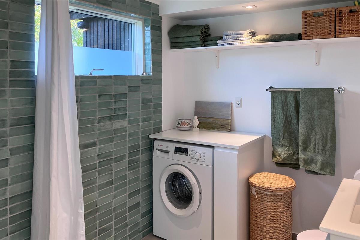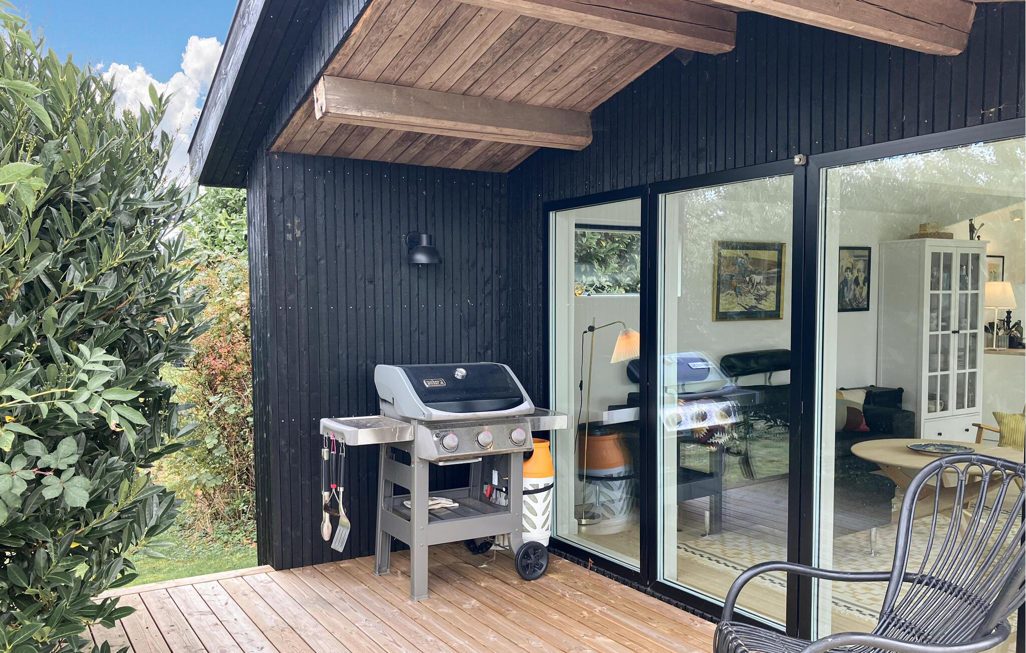 Breng aangename uren door op het grote houten terras, dat zich uitstrekt over de hele voorkant van het huis. Geniet van je vrije vakantietijd met een kopje koffie of ontspan op het tuinmeubilair met uitzicht op het fjord. Barbecue op milde zomeravonden en sluit de dag af in een rustige sfeer. De uitgestrekte tuin biedt ruimte voor spel, beweging en ontspanning.