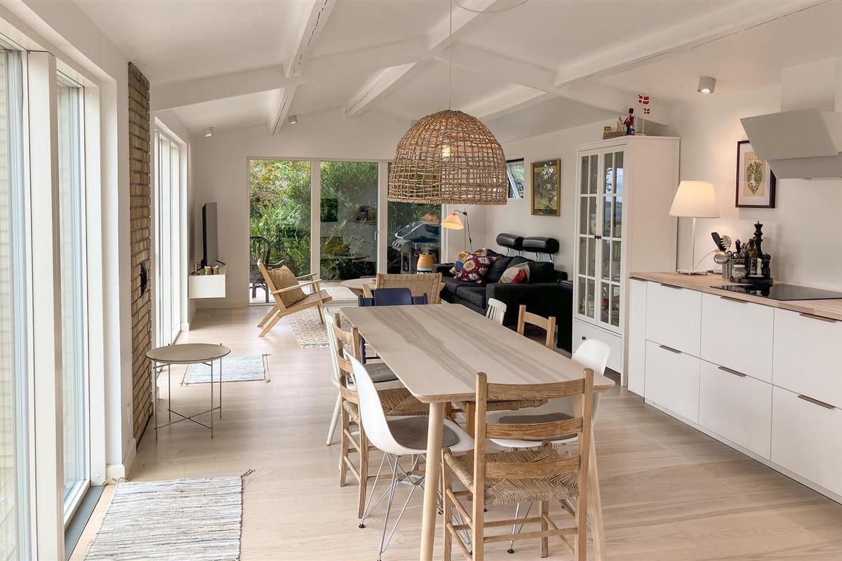 Beleef ontspannen dagen in je licht vakantiehuis, dat comfort combineert met een prachtige locatie aan de Isefjord. Hier kunt u uw vakantie doorbrengen in een rustige omgeving, met veel ruimte om te ontspannen en een prachtig uitzicht op het glooiende landschap. De open woonkamer met grote ramen combineert binnen en buiten tot een harmonieus geheel. Maak het jezelf gemakkelijk op de bank en geniet van het uitzicht op het groen of een film op de tv. De keuken is ideaal om avonden samen te koken aan de grote eettafel.