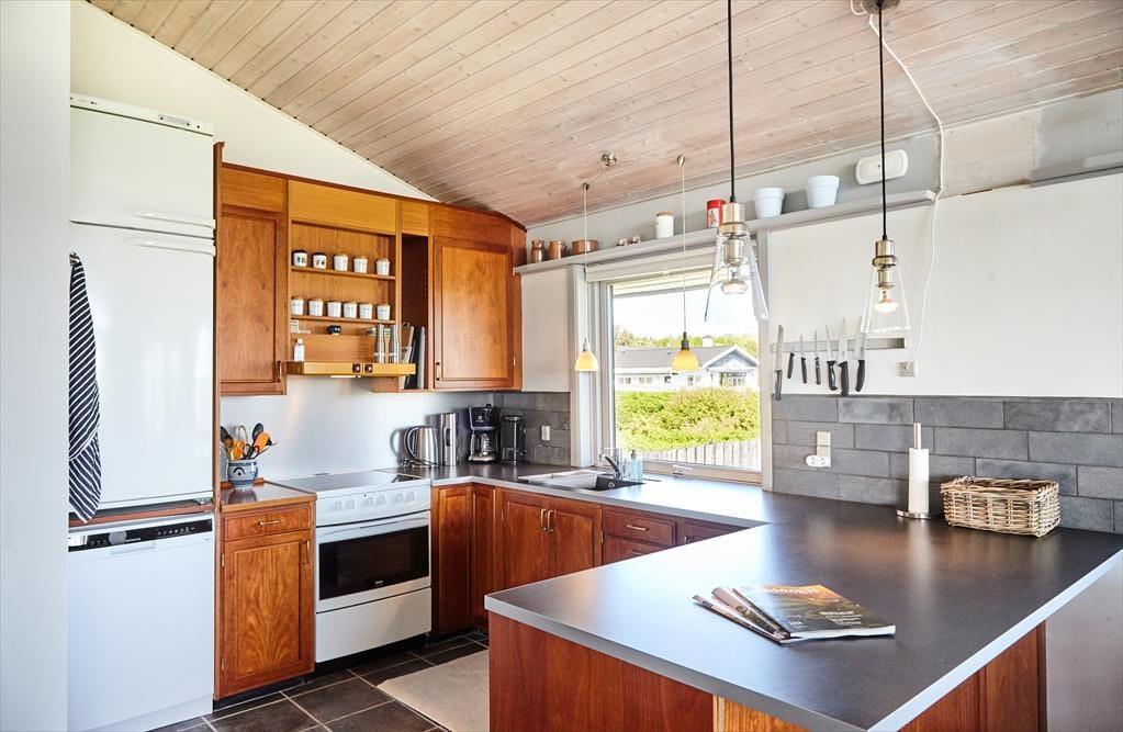 In diesem Haus wirst du sofort in Ferienstimmung versetzt und dich entspannen. Die Küche ist offen in das Wohnzimmer integriert und erlaubt dem Koch oder der Köchin während der Essenszubereitung ein Teil der Gemeinschaft zu sein. Entzünde ein Feuer im Kaminofen und genieße eine Flasche Wein beim entspannten Gespräch, während deine Kinder am Abend in Ihren Betten liegen.