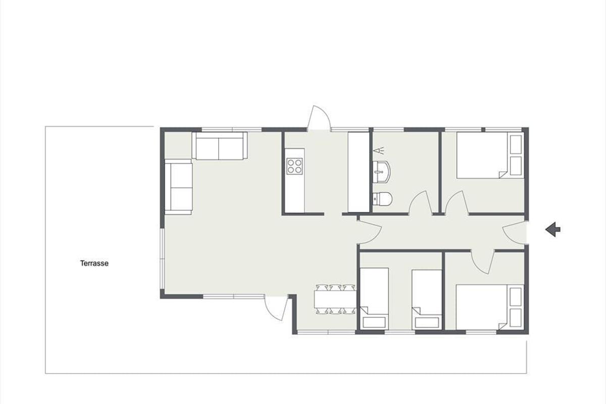 In diesem Urlaubsdomizil fühlst du dich vom ersten Moment an heimisch und willkommen. Erholsamen und entspannten Urlaubstagen steht bei diesem Objekt nichts im Wege. Im gemütlichen Wohnraum, der offen mit der Küche verbunden ist, kannst du mit deinen Lieben am Esstisch vergnügte Spieleabende verleben und die Mahlzeiten in geselliger Runde genießen. Bei der Zubereitung des Essens sind dir deine Familienmitglieder sicher gern behilflich. Der Rest der Wohnfläche ist drei schönen Schlafräumen und einem Badezimmer überlassen.