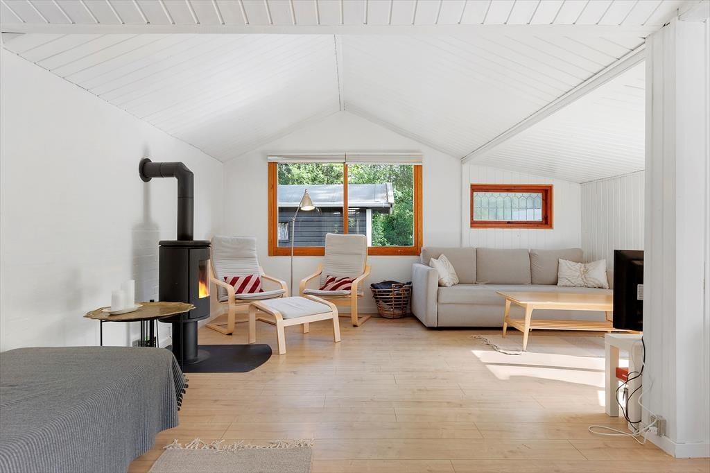 Dieses schlichte Ferienhaus wird Sie mit seinem hellen Wohnzimmer und seiner geschmackvollen Einrichtung begeistern. Hier finden Sie vor allem Geräumigkeit und Komfort, einen gemütlichen Kaminofen und einen separaten Essbereich, der durch die raffinierte Anordnung und Auswahl ästhetischer Möbel geschaffen wurde.