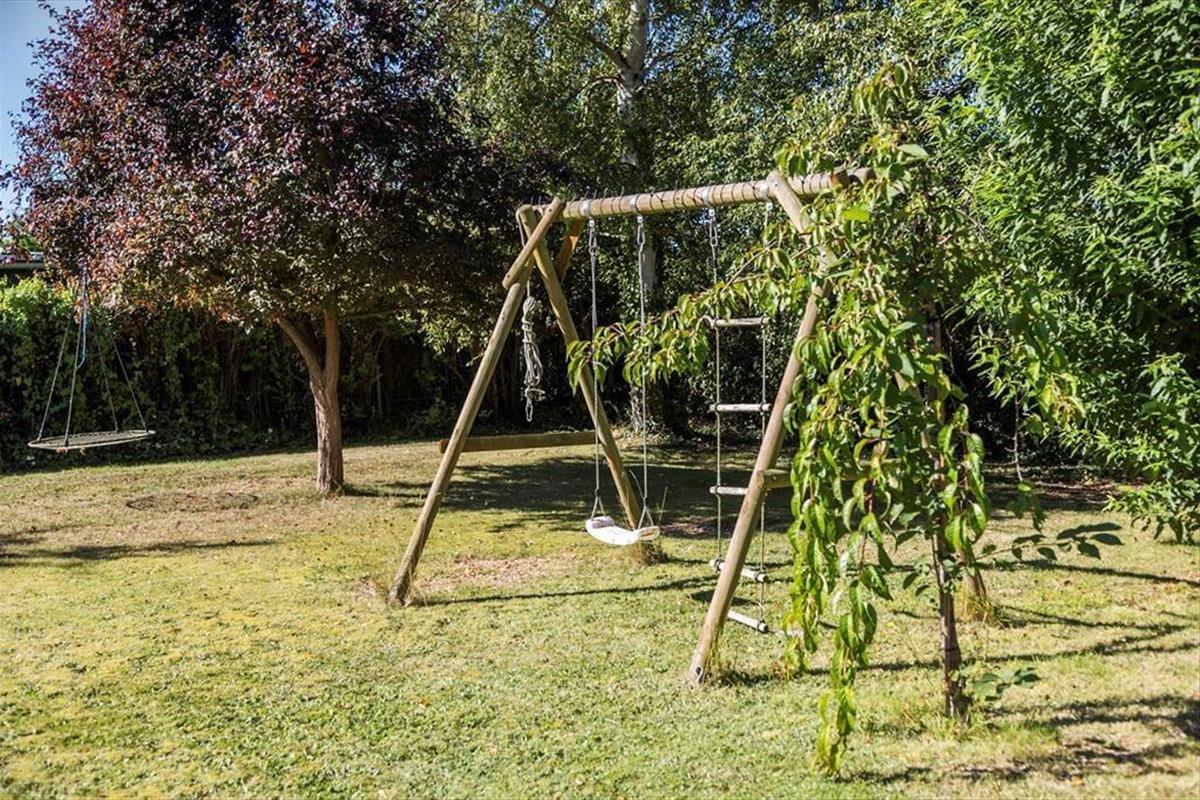 -Auf der großen Terrasse des Hauses, die immer auf einer Seite überdacht ist, finden Sie den Grill, auf dem Sie Steaks zubereiten können, während Sie sich auf der Sonnenliege oder mit einem Glas kalten Roséwein im Sessel entspannen. Der Garten ist mit einem Trampolin und Schaukeln ausgestattet, und der Rasen ist ideal für eine Partie Petanque oder Krocket.
