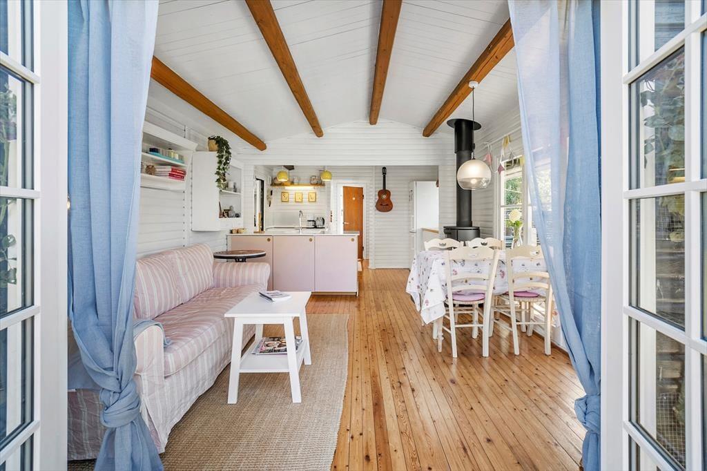 Machen Sie einen Ausflug an den Strand von Isefjord oder Roskilde Fjord, nur wenige Minuten vom Ferienhaus entfernt. In Kulhuse gibt es einen Sandstrand in der Nähe des Hafens, wo die Columbus-Fähre Sie nach Nordseeland bringen kann, oder Sie können auf dem „Schiff“ Dorette im Hafen von Kulhuse spielen. Machen Sie einen Spaziergang im Nordskoven, wo Sie Ihr Lunchpaket zu den Drei Eichen mitnehmen können, deren Lebensgeschichte mehr als 1000 Jahre zurückreicht. In Jægerspris können Sie das Schloss Jægerspris besuchen und im Schlosspark spazieren gehen, das Grab der Gräfin Danner besichtigen und den Ausflug mit einem Eis in einer der beliebtesten Eisdielen Dänemarks beenden. In der Umgebung gibt es viele Möglichkeiten zum Wandern und Radfahren, darunter der Fjordweg, der Sie entlang des Fjords und in die Landschaft von Hornsherred führt. Der Fjordweg ist 230 Kilometer lang und bietet schöne Aussichten und abwechslungsreiche Wege, die sowohl für Radfahrer als auch für Wanderer geeignet sind.