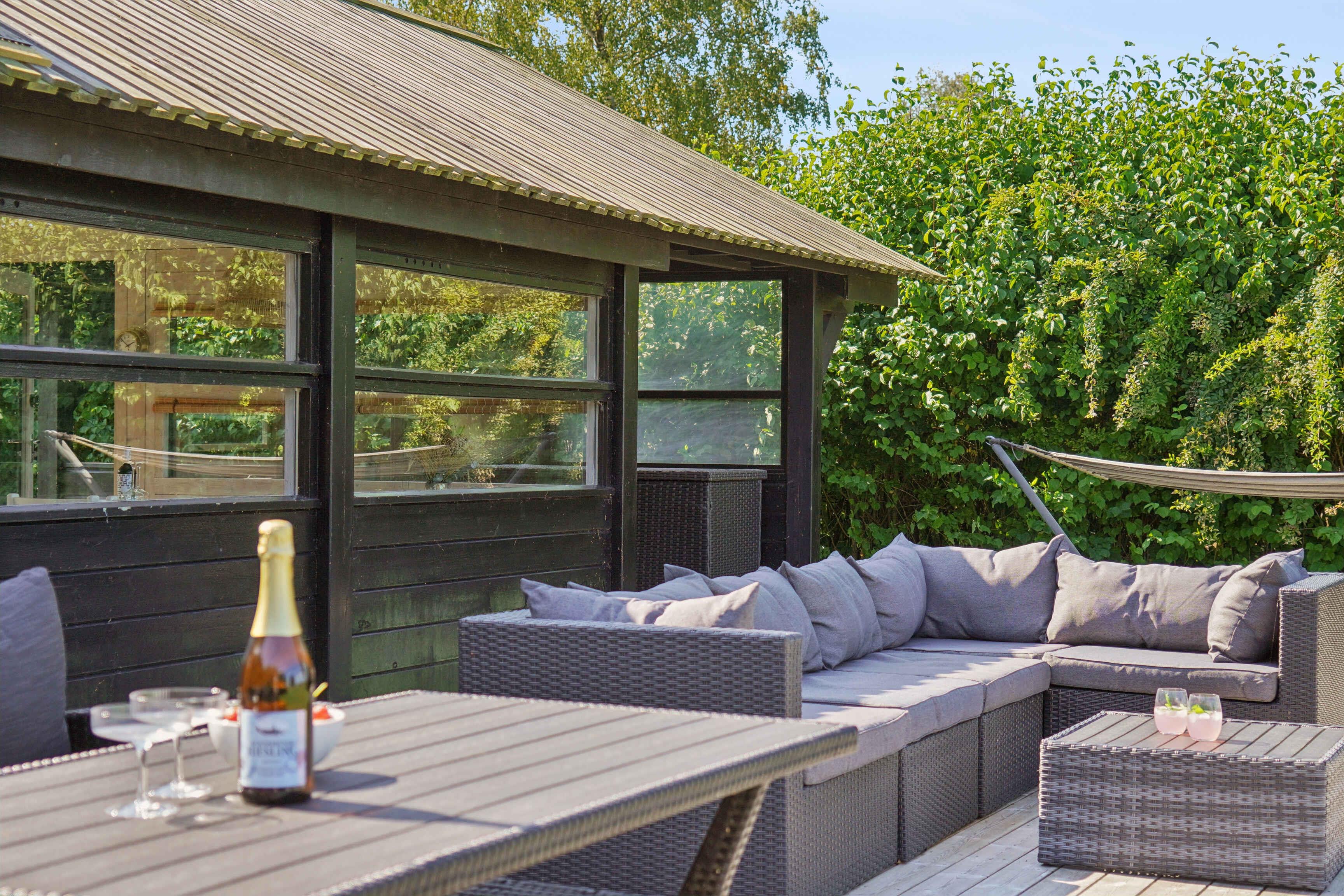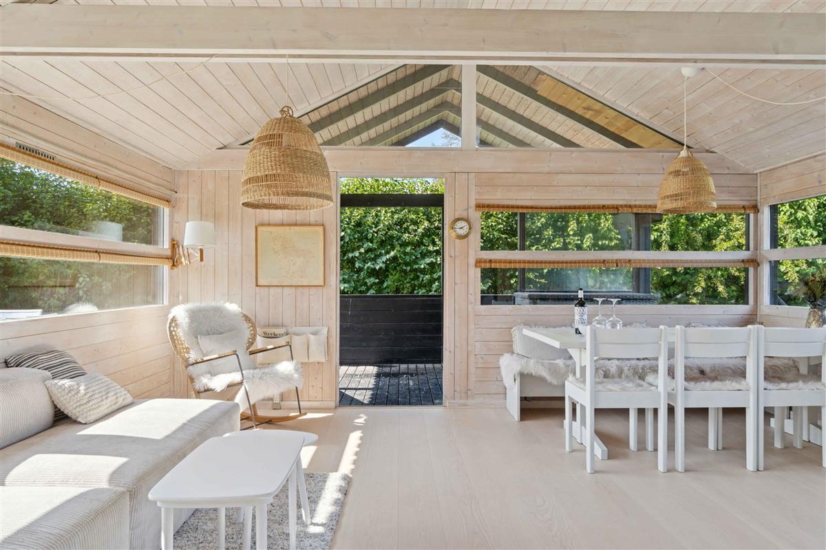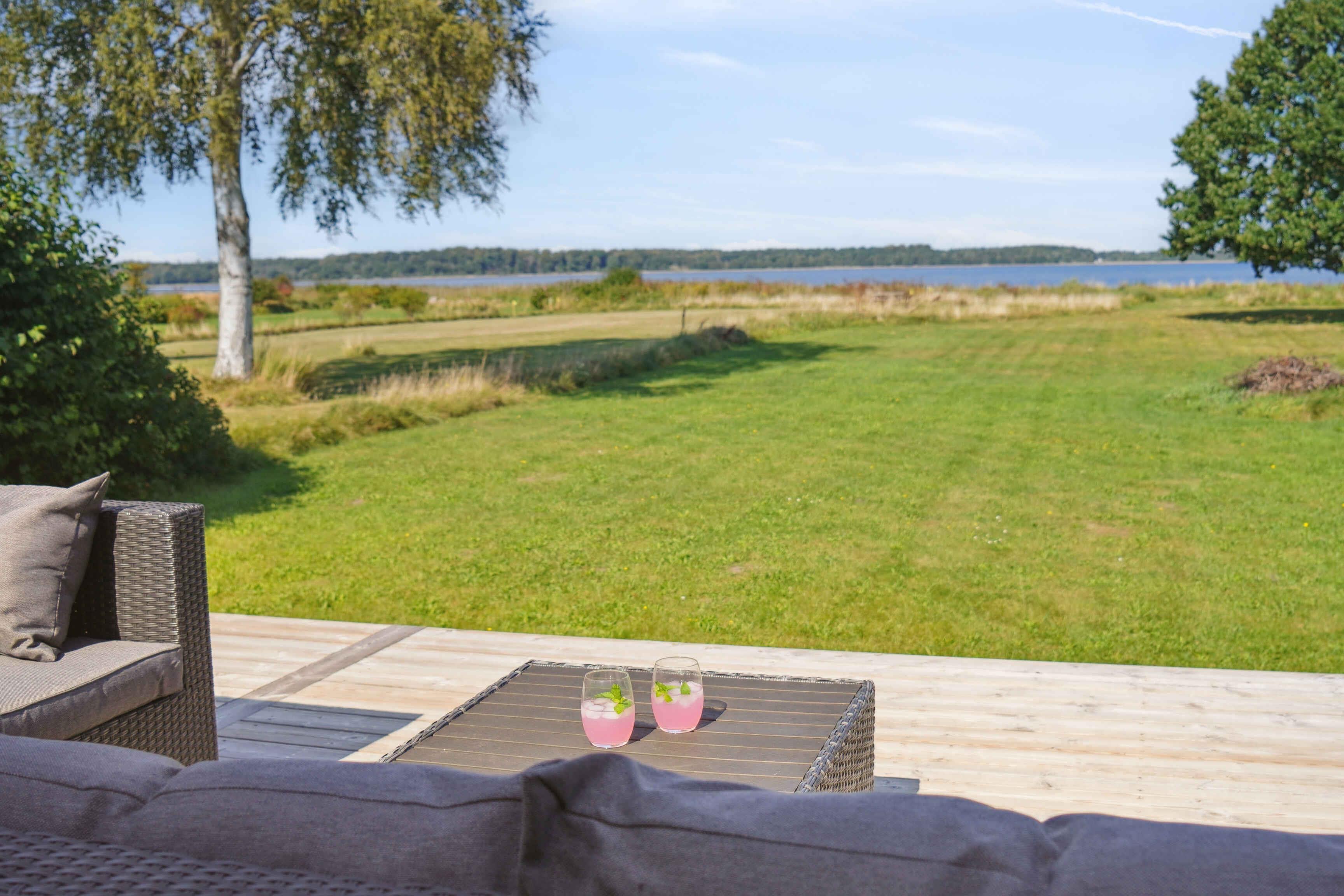 Licht en gezellig zomerhuis aan Roskilde Fjord met panoramauitzicht, twee terrassen en moderne voorzieningen.