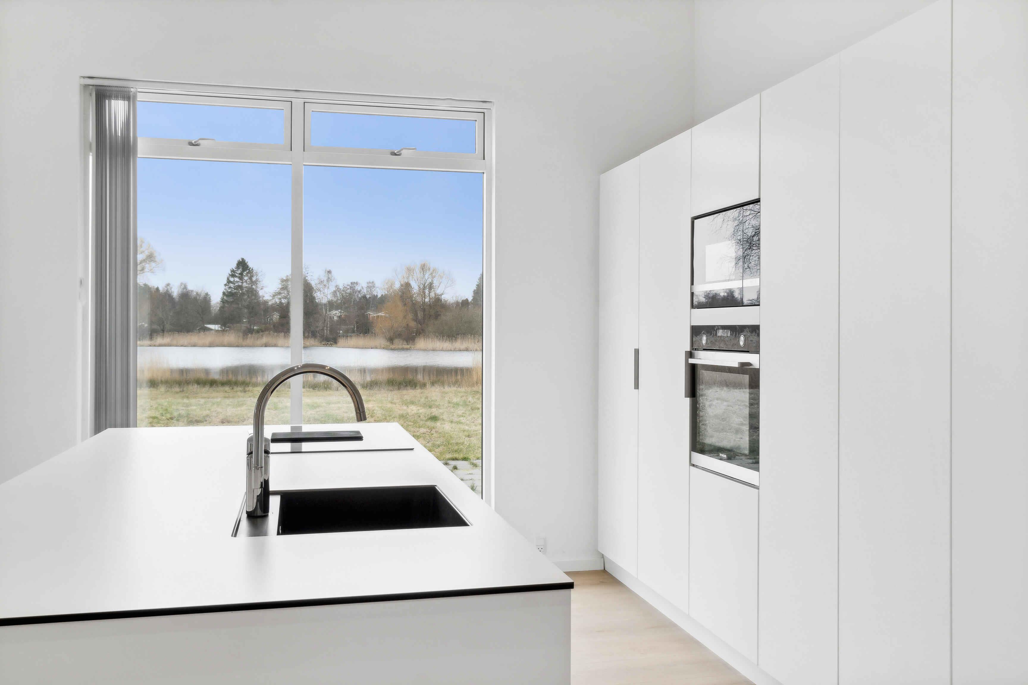 Modern zomerhuis in Kulhuse met panoramisch uitzicht op het grootste meer, dicht bij strand en bos.