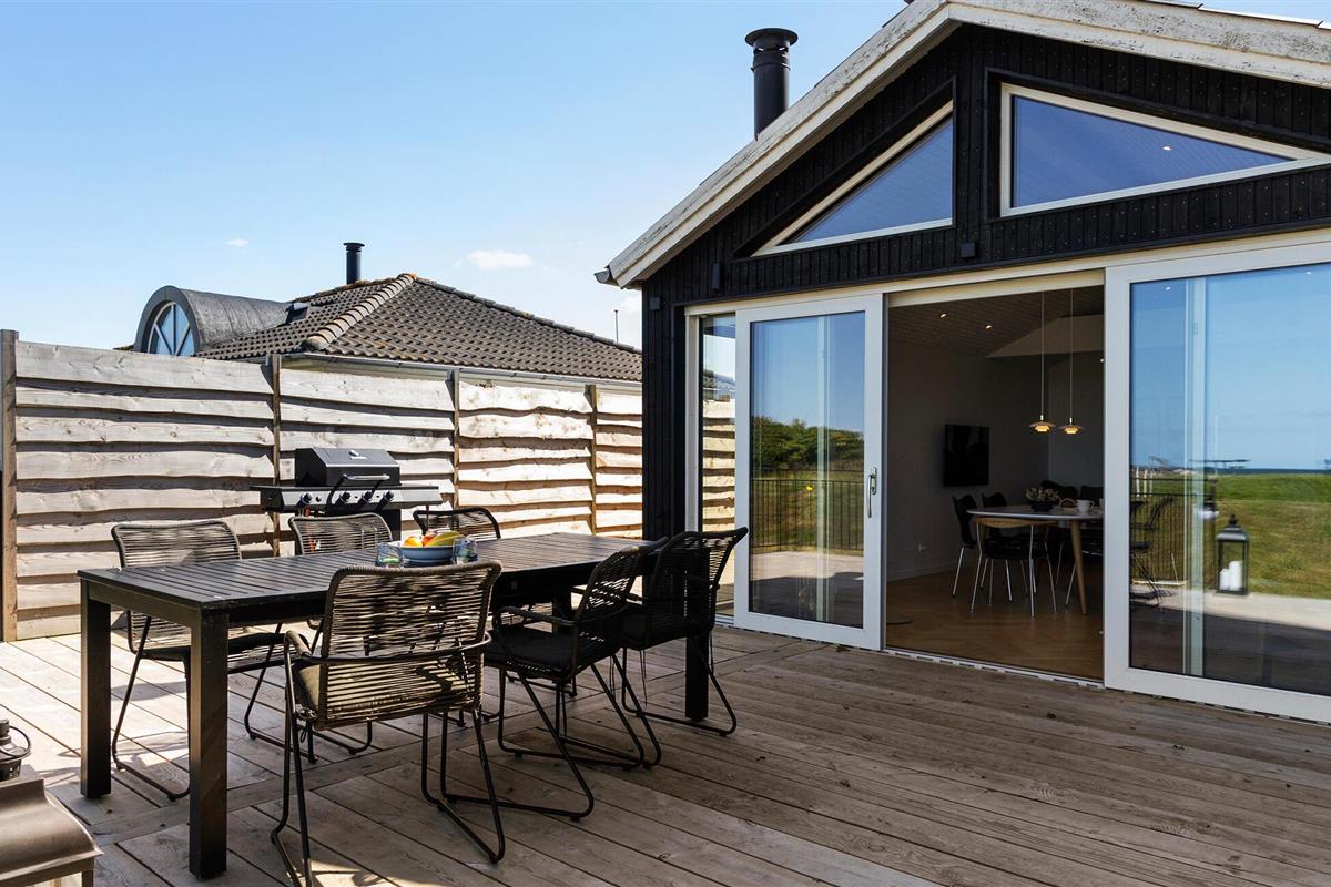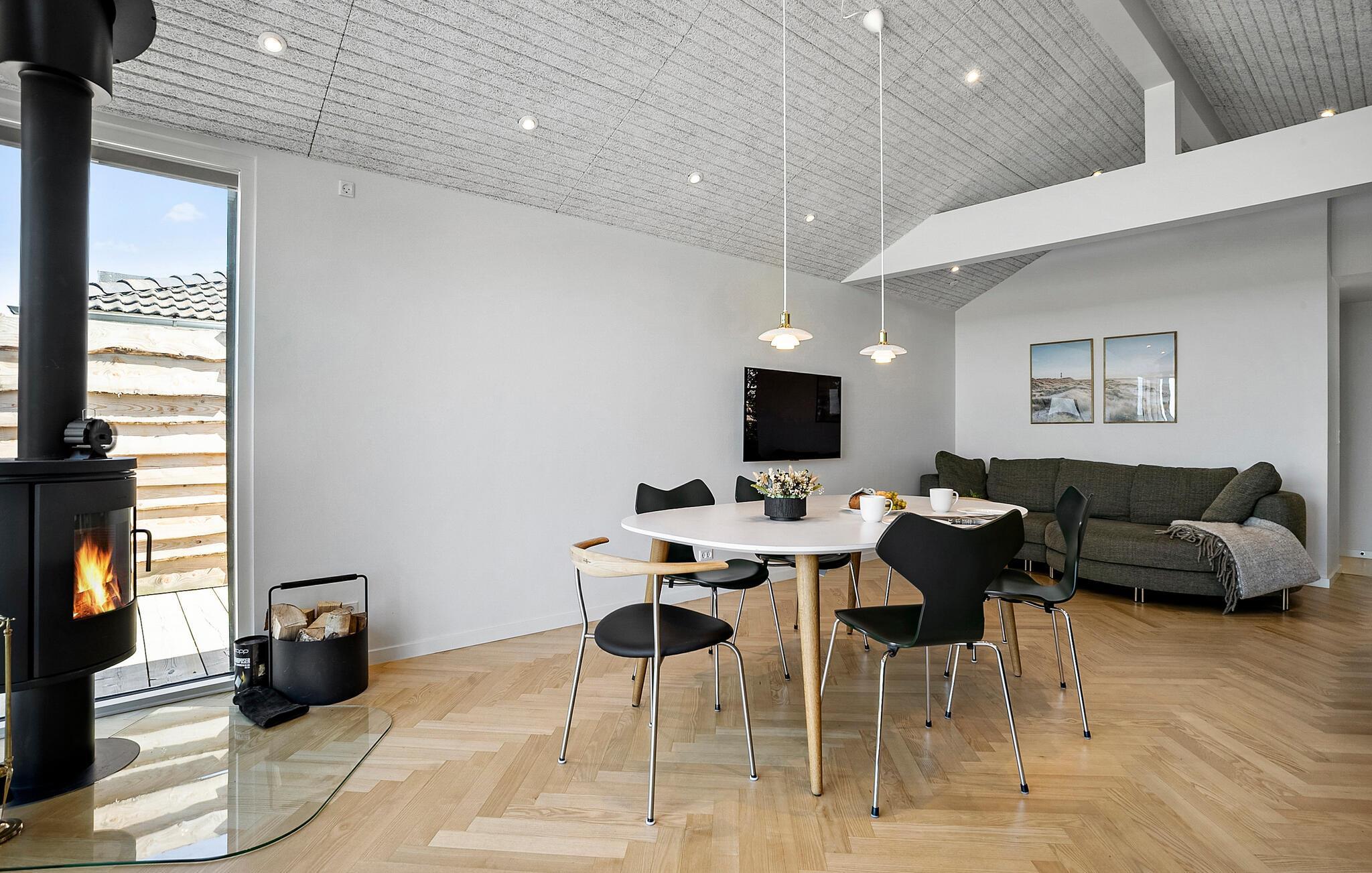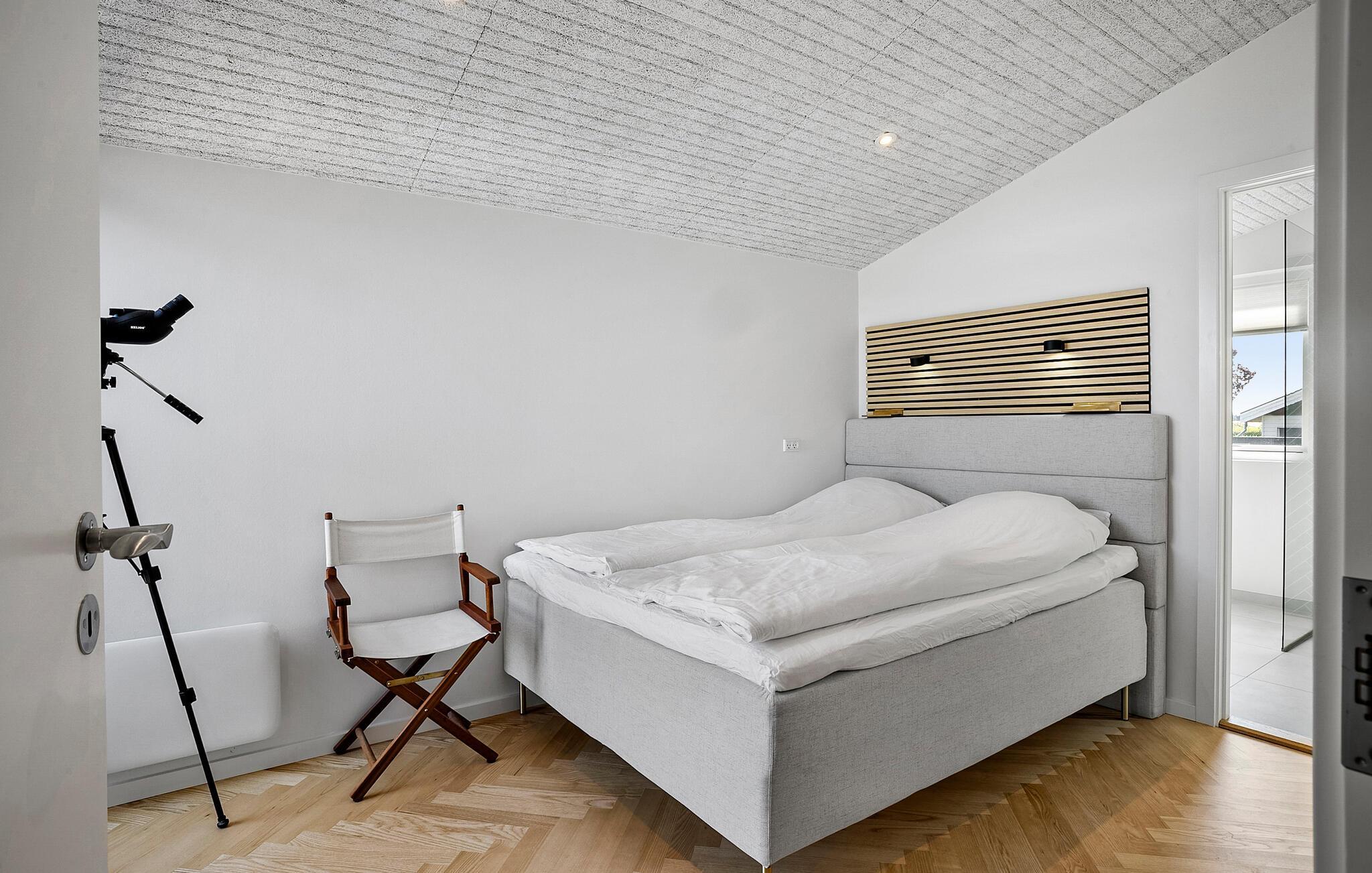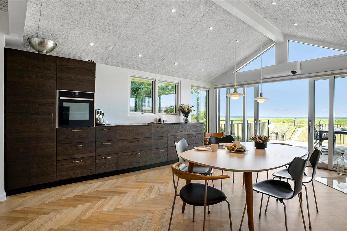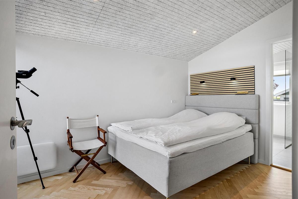 Ervaar pure ontspanning in dit luxe vakantiehuis op Jørgensø Strand. Het moderne design en de hoogwaardige inrichting creëren een stijlvolle sfeer die niets te wensen overlaat. Vanuit de lichte woonkamer kunt u genieten van een adembenemend panoramisch uitzicht op zee. De open en mooie keuken nodigt uit om samen te koken, terwijl het grote terras ideaal is om van de zon te genieten terwijl je luistert naar het geluid van de zee. De ligging aan het strand maakt dit huis tot een bijzonder toevluchtsoord, perfect voor een ontspannen vakantie in alle comfort.