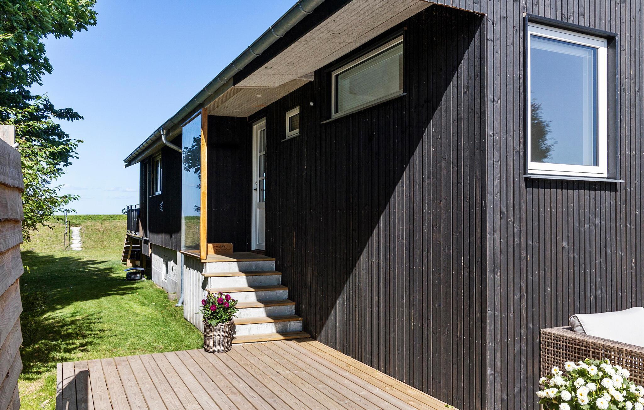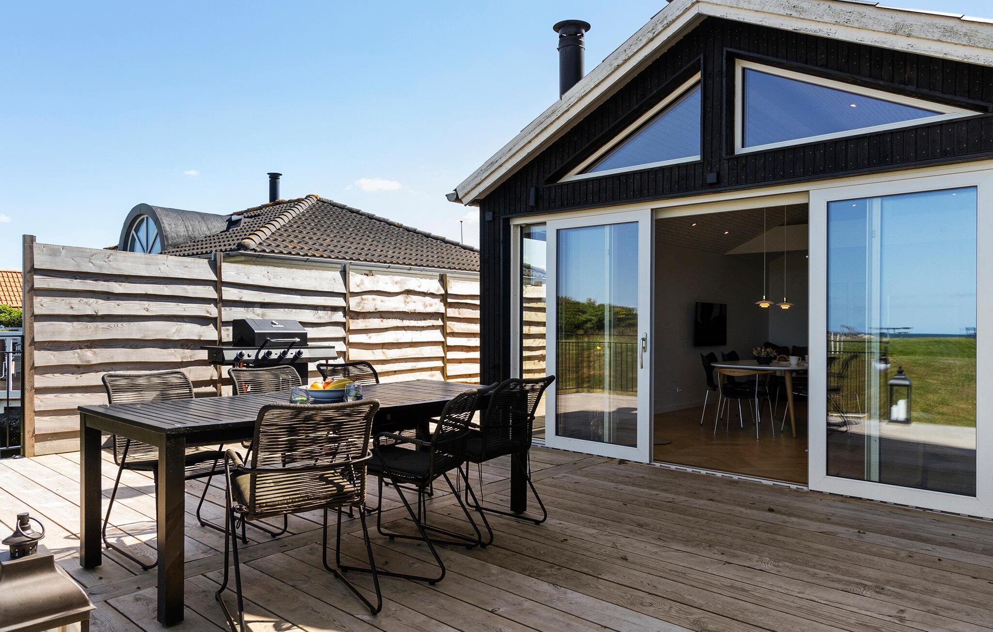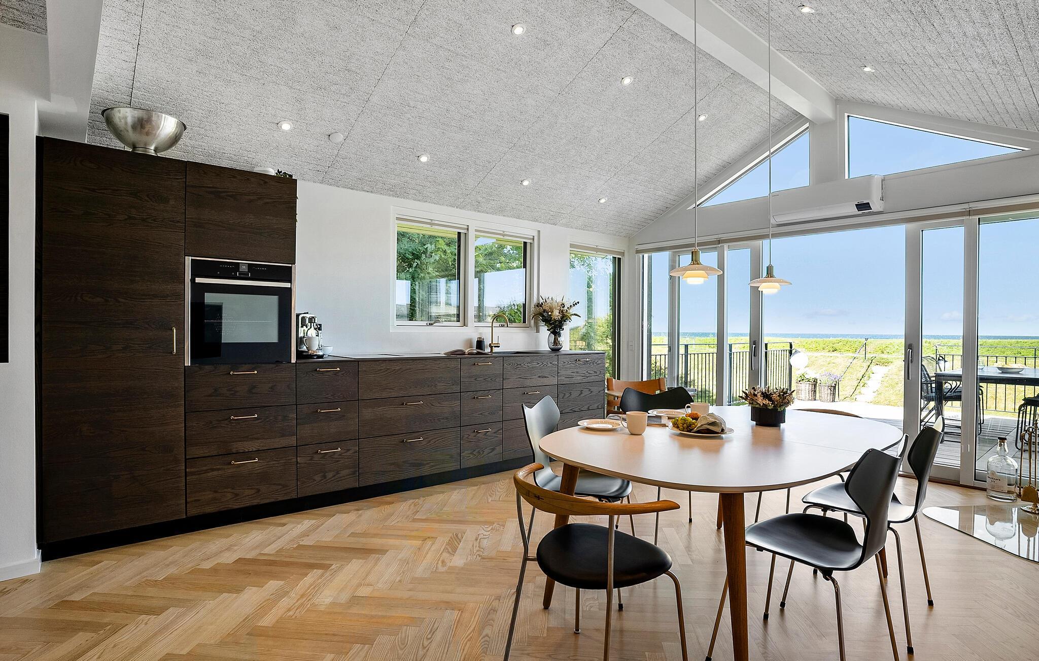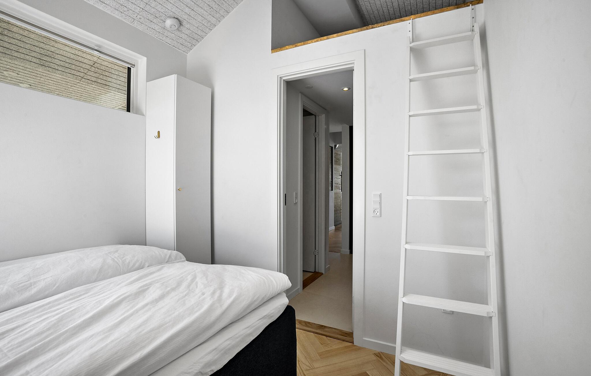 Ervaar pure ontspanning in dit luxe vakantiehuis op Jørgensø Strand. Het moderne design en de hoogwaardige inrichting creëren een stijlvolle sfeer die niets te wensen overlaat. Vanuit de lichte woonkamer kunt u genieten van een adembenemend panoramisch uitzicht op zee. De open en mooie keuken nodigt uit om samen te koken, terwijl het grote terras ideaal is om van de zon te genieten terwijl je luistert naar het geluid van de zee. De ligging aan het strand maakt dit huis tot een bijzonder toevluchtsoord, perfect voor een ontspannen vakantie in alle comfort.