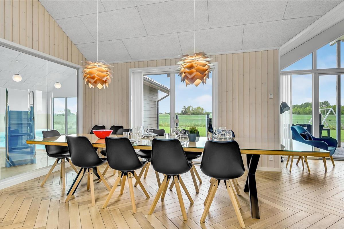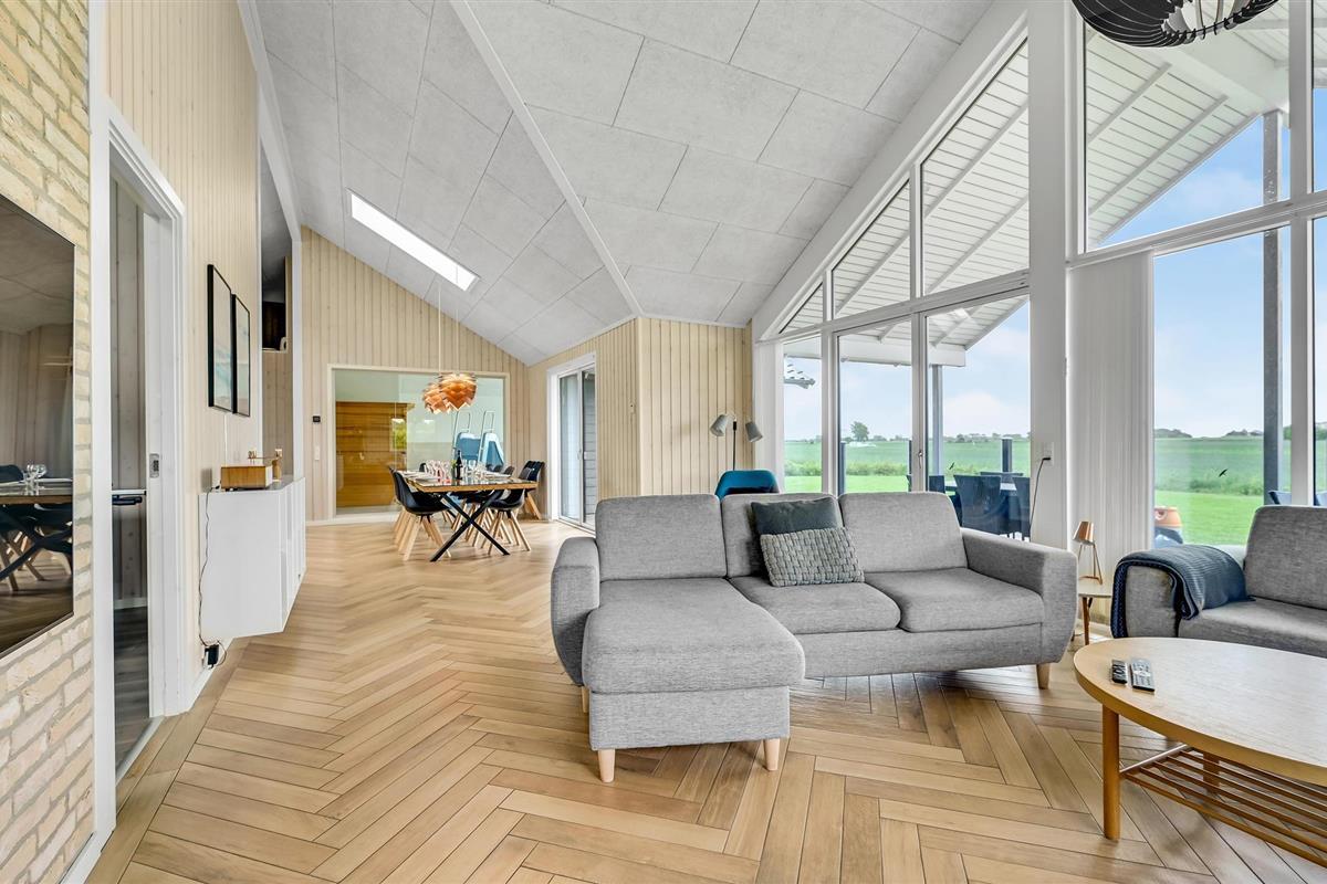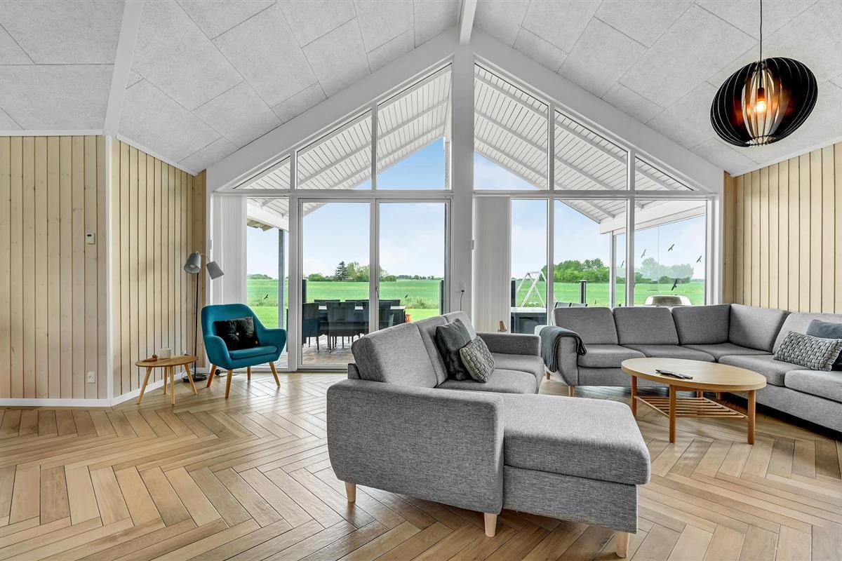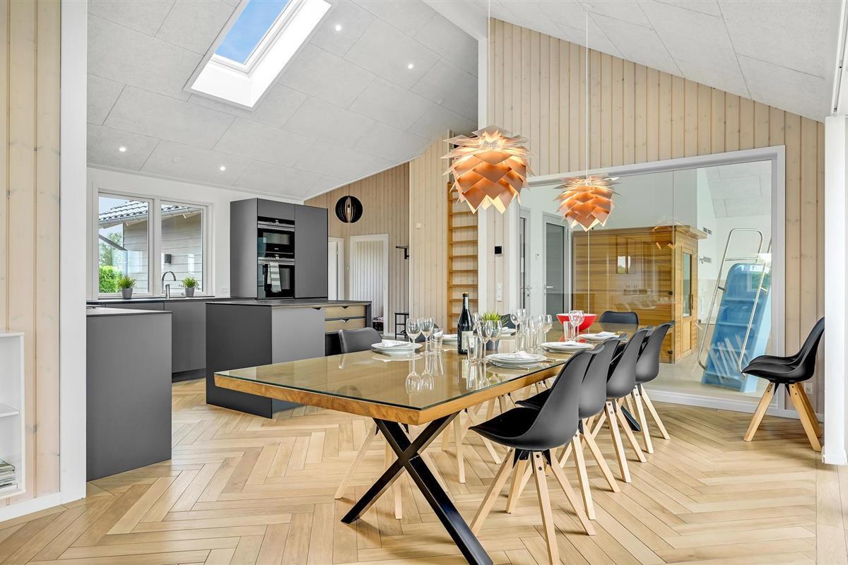 Comfortabel en modern vakantiehuis met zwembad, sauna en speelruimte nabij het strand van Otterup.