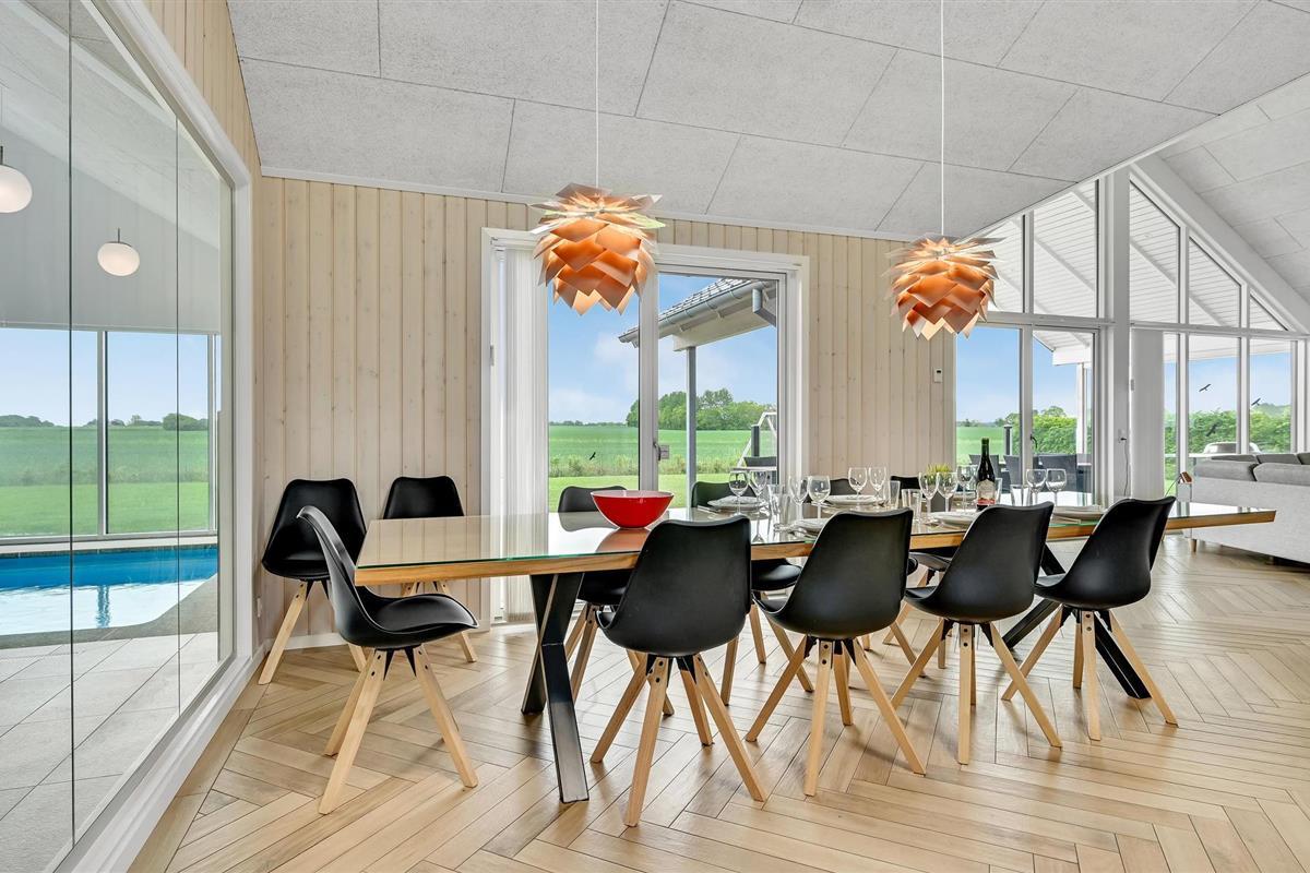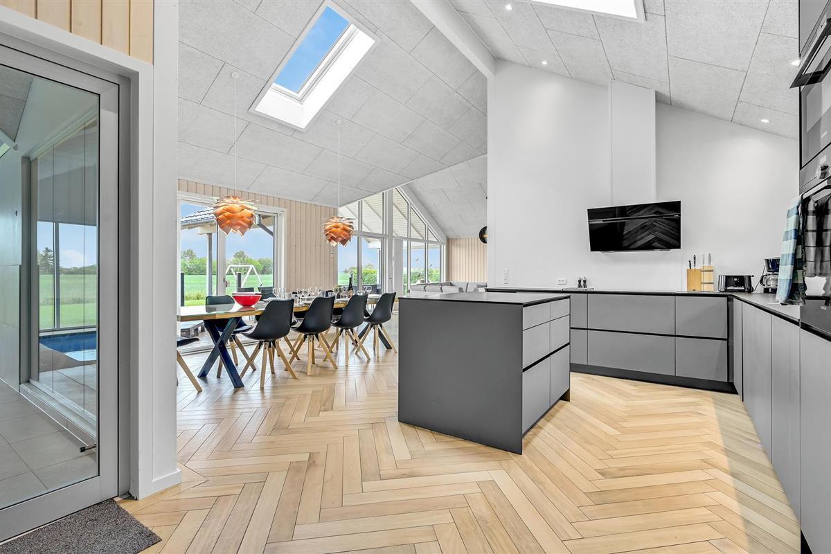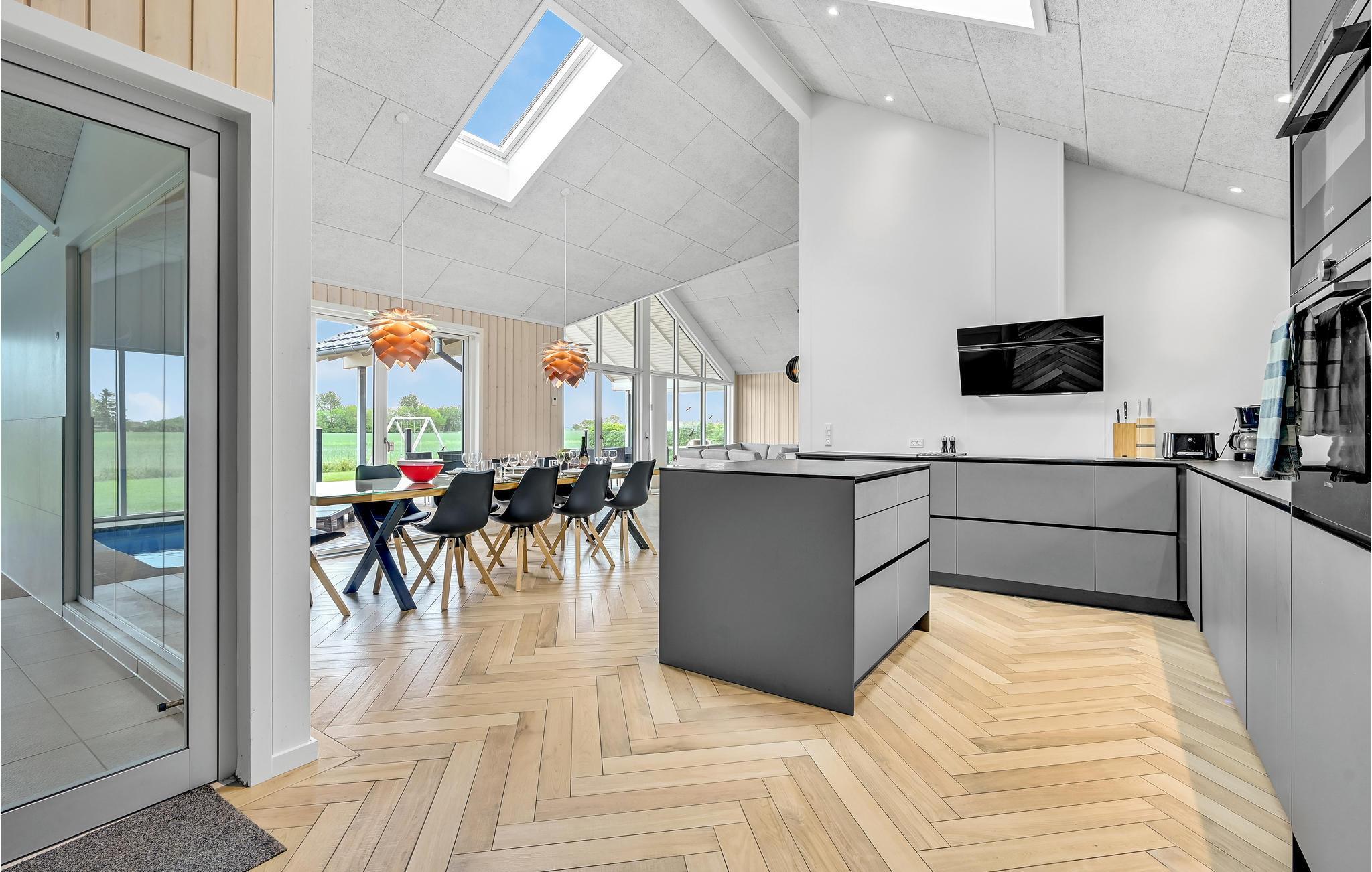 Comfortabel en modern vakantiehuis met zwembad, sauna en speelruimte nabij het strand van Otterup.