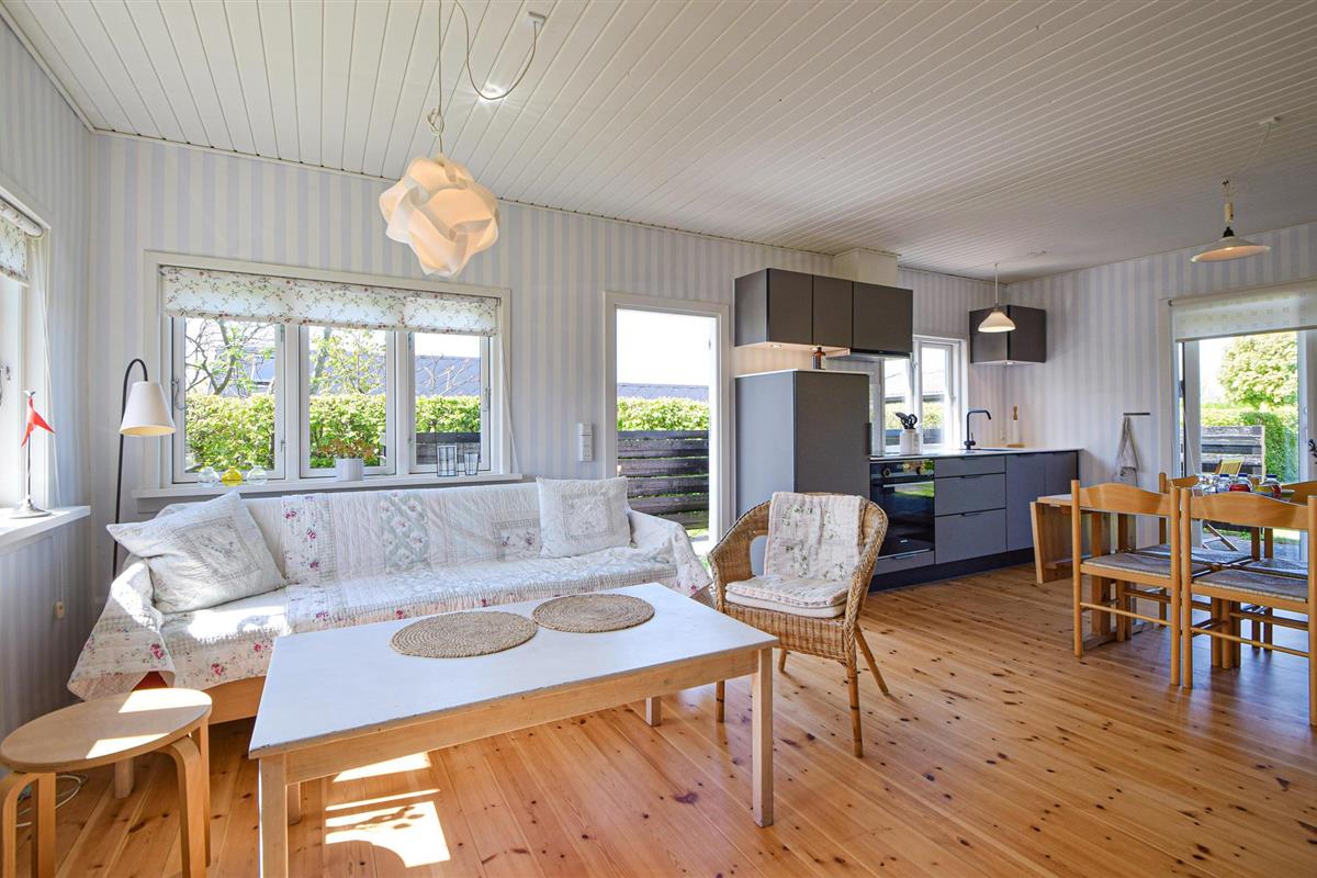Hier ziet u een zonnig zomerhuis dat slechts ongeveer 100 meter van de zee en het strand ligt. Het huis heeft een woonoppervlakte van bijna 50 m² en ligt op een perceel met veel ruimte om te ballen. U kunt ook ontspannen op het terras en in de comfortabele ligstoelen.