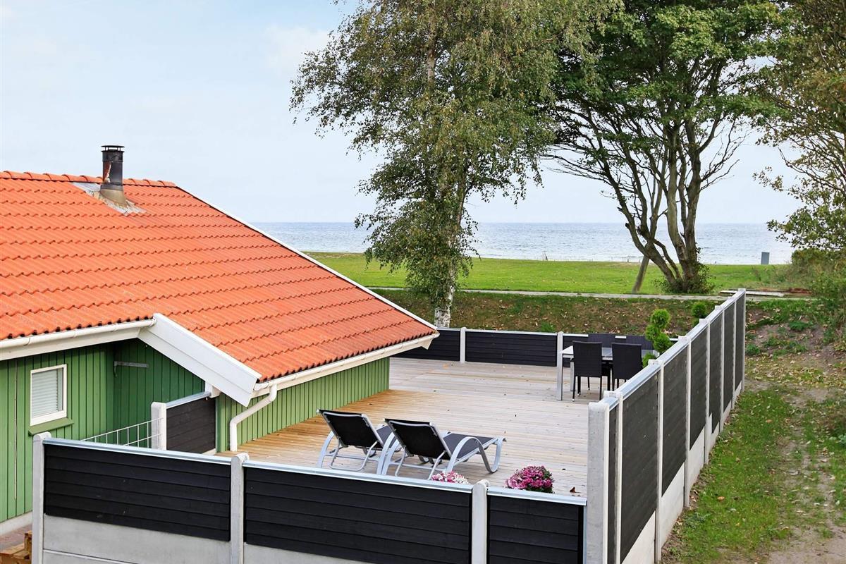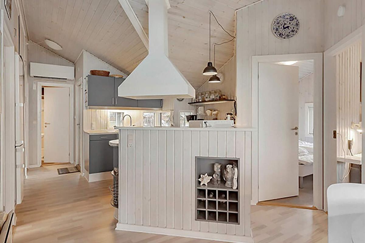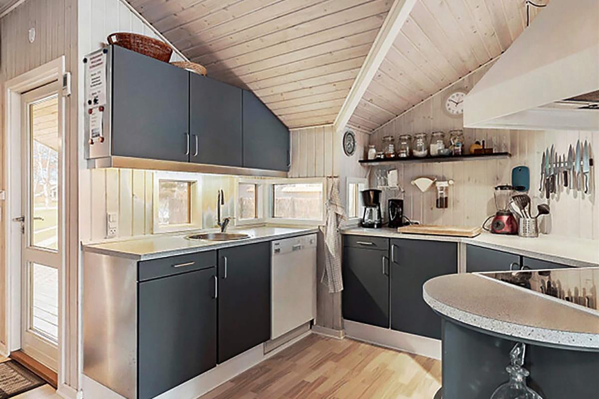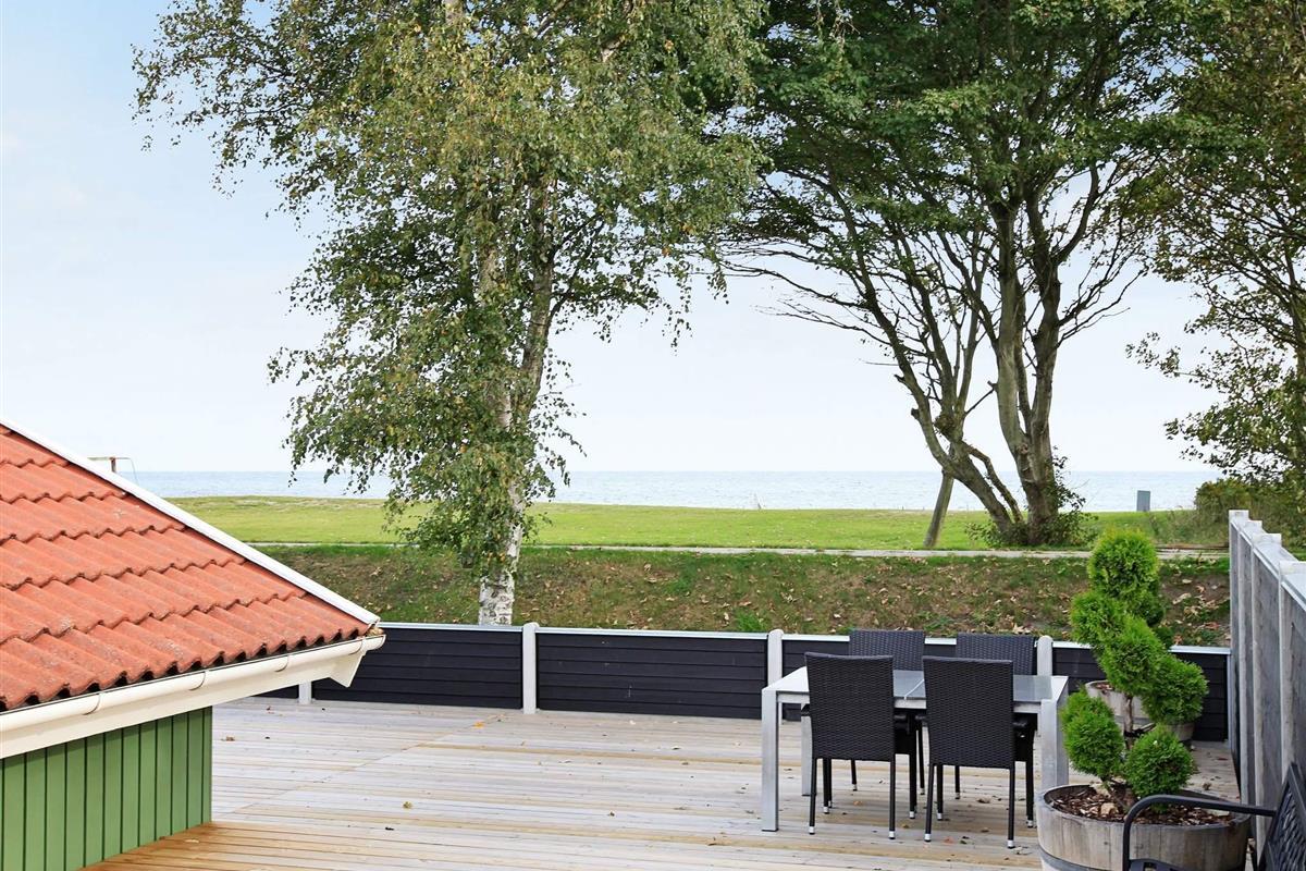 Hübsches Holzferienhaus auf einem Naturgrundstück in 1. Reihe mit Meeresblick über das Kattegat. Das Haus ist hell und gemütlich eingerichtet, u.a. gibt es in der Küche einen Geschirrspüler und eine Mikrowelle. Zum Haus gehören außerdem offene und überdachte Terrassenflächen für schöne Sonnenstunden. Nach einem langen Tag können Sie sich herrlich in der Sauna und dem Whirlpool entspannen. Außerdem gibt es auch einen doppelten Carport und das Doppelbett im Schlafzimmer im Obergeschoss ist höhenverstellbar.