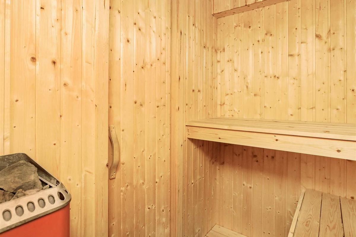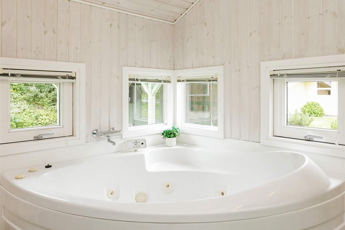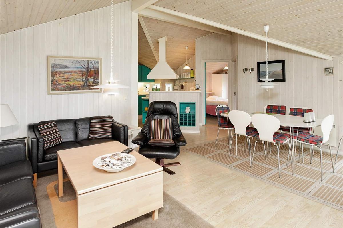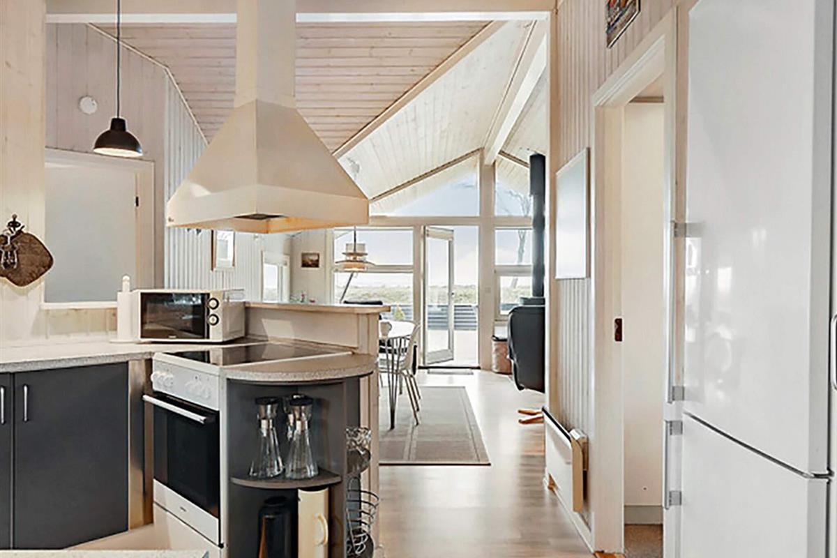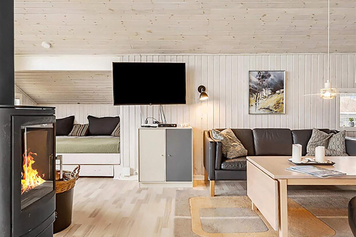 Hübsches Holzferienhaus auf einem Naturgrundstück in 1. Reihe mit Meeresblick über das Kattegat. Das Haus ist hell und gemütlich eingerichtet, u.a. gibt es in der Küche einen Geschirrspüler und eine Mikrowelle. Zum Haus gehören außerdem offene und überdachte Terrassenflächen für schöne Sonnenstunden. Nach einem langen Tag können Sie sich herrlich in der Sauna und dem Whirlpool entspannen. Außerdem gibt es auch einen doppelten Carport und das Doppelbett im Schlafzimmer im Obergeschoss ist höhenverstellbar.