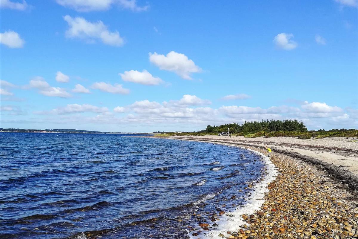 Auf einem weitläufigen, etwa 15.000 m2 großen Naturgrundstück, das bis ans Strandufer der Insel Jegindø heranreicht, steht dieses reetgedeckte Ferienhaus. Es bietet u.a. Panoramaausblick zum Wasser und vom Naturgrundstück führt ein kleiner, privater Trampelpfad direkt hinunter zur Küste und zum kinderfreundlichen Strandufer.