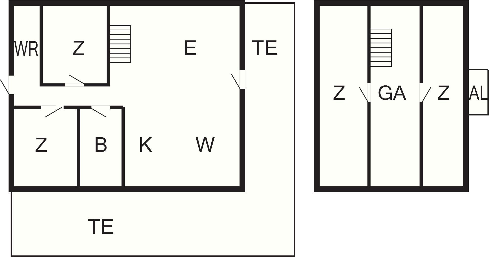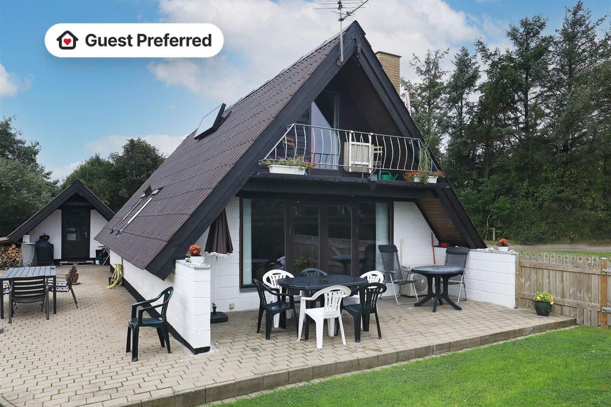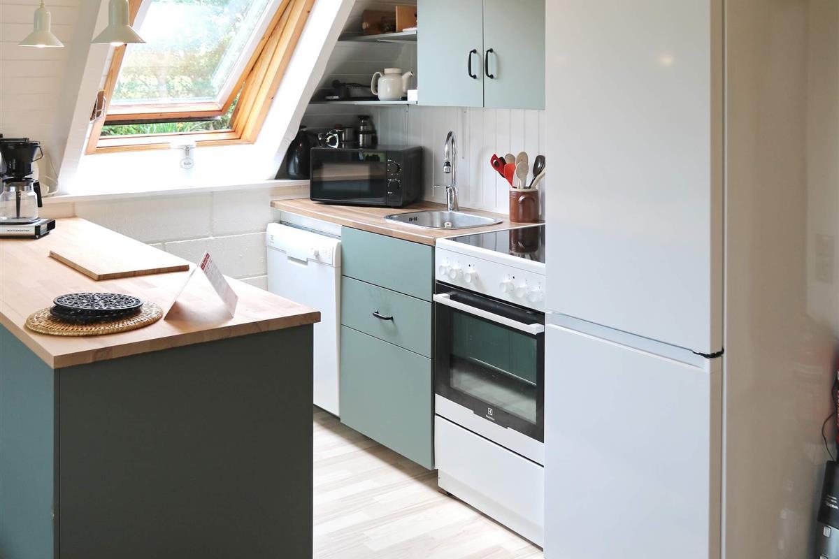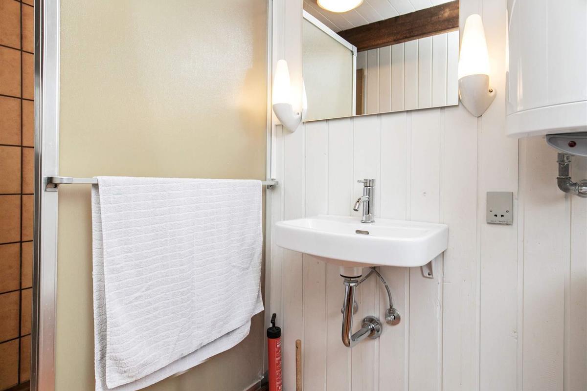 Im Erdgeschoss findet man den offenen Küchen-/Wohnbereich für das Familienleben mit Ess- und Sitzecke. Zudem stehen WLAN, Holzofen und eine klimafreundliche Wärmepumpe bereit. Die Küchenzeile ist u.a. mit Geschirrspüler, Ceranfeld, Dunstabzugshaube und kleinem Kühlschrank ausgestattet. Im praktischen Hauswirtschaftsraum am Eingang steht zudem ein kleiner Gefrierschrank. Ebenfalls im Erdgeschoss befinden sich zwei Schlafzimmer; eines mit Einzelbett, das zweite mit zwei Einzelbetten. Außerdem kleines Badezimmer mit Dusche und Waschbecken. Es gibt sowohl ein Kinderbett als auch einen Hochstuhl im Haus. Auf dem Grundstück mit mehreren Sitzplätzen und Terrassen gibt es öfters Fasane, Hasen oder Rehe zu sehen.