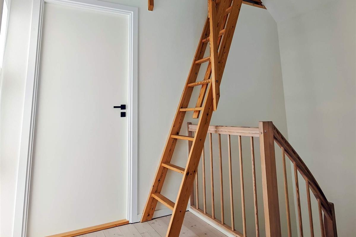 Das Wohnzimmer im 1. Stock ist mit einer Sitzgruppe und Sesseln ausgestattet. Von hier aus gelangt man auf die schöne große Dachterrasse. Im 1. Stock befindet sich ein weiteres geräumiges Schlafzimmer mit einem Doppelausziehbett und ein Badezimmer mit WC, Waschbecken, Dusche, Waschmaschine und Trockner. Die letzten beiden Schlafplätze im Haus befinden sich auf Matratzen auf dem Dachboden, der vom ersten Stock aus zugänglich ist.