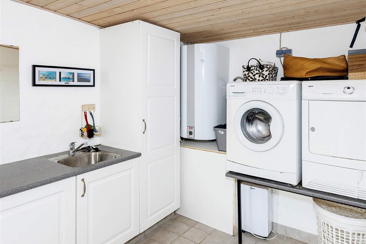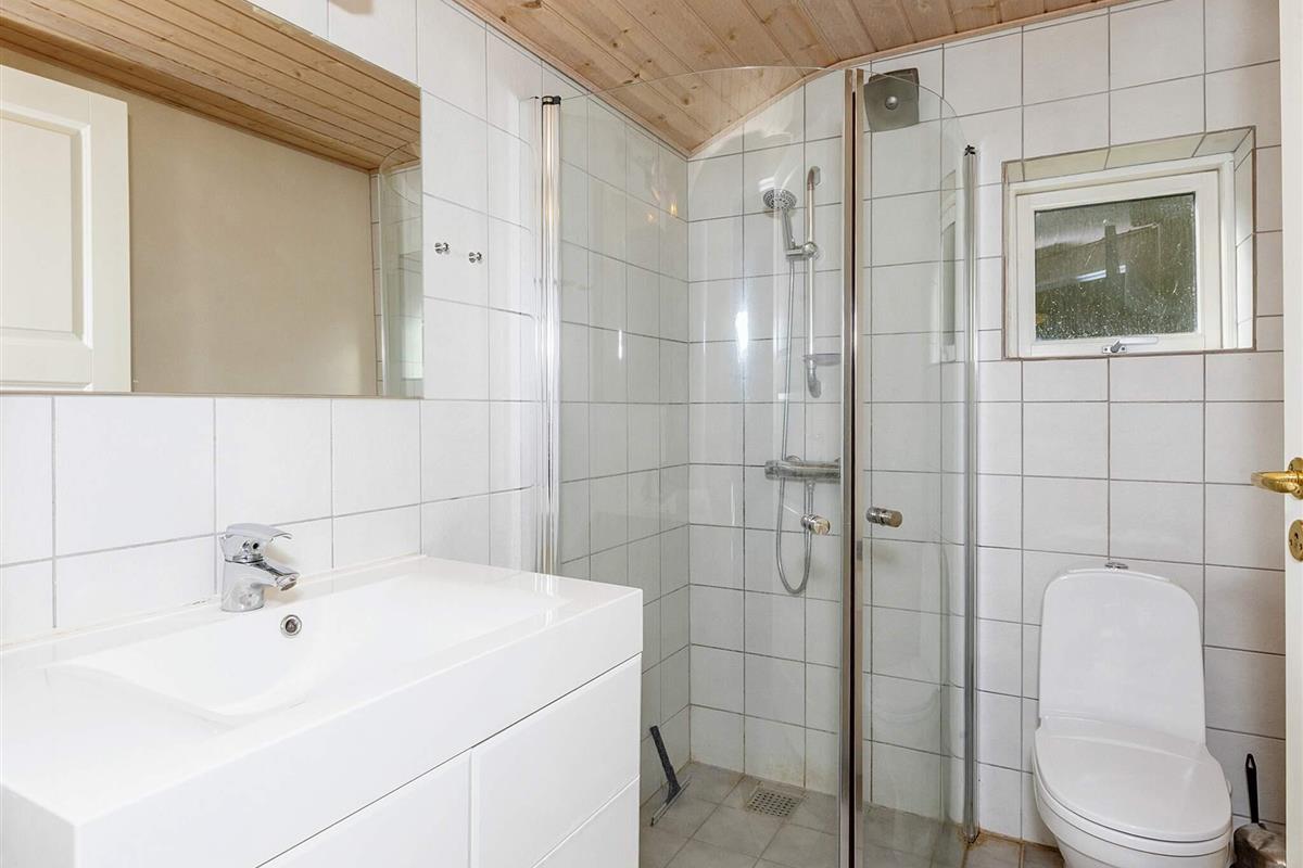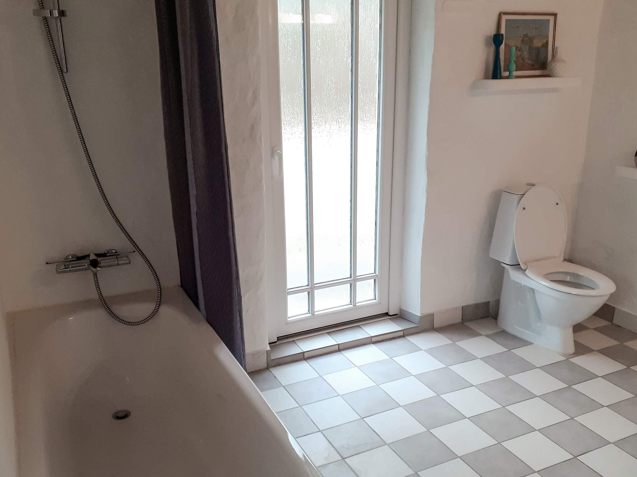 Im Haupthaus befinden sich ein kombinierter Ess- und Küchenbereich sowie ein Schlafzimmer mit Doppelbett. Die geräumige und gut ausgestattete Küche verfügt über eine Gefriertruhe. Das große Badezimmer ist mit einer Badewanne ausgestattet. Vom Badezimmer aus gelangt man in die hauseigene Sauna, in der man sich nach einer langen Wanderung in der wunderschönen Natur der Umgebung aufwärmen kann. Oben im ersten Stock befindet sich ein Wohnzimmer mit Flachbildfernseher und Chromecast. Vom Wohnzimmer aus hat man Zugang zu einem Balkon. Sowohl vom Balkon als auch vom Haus aus genießt man einen herrlichen Blick auf den Limfjord!
