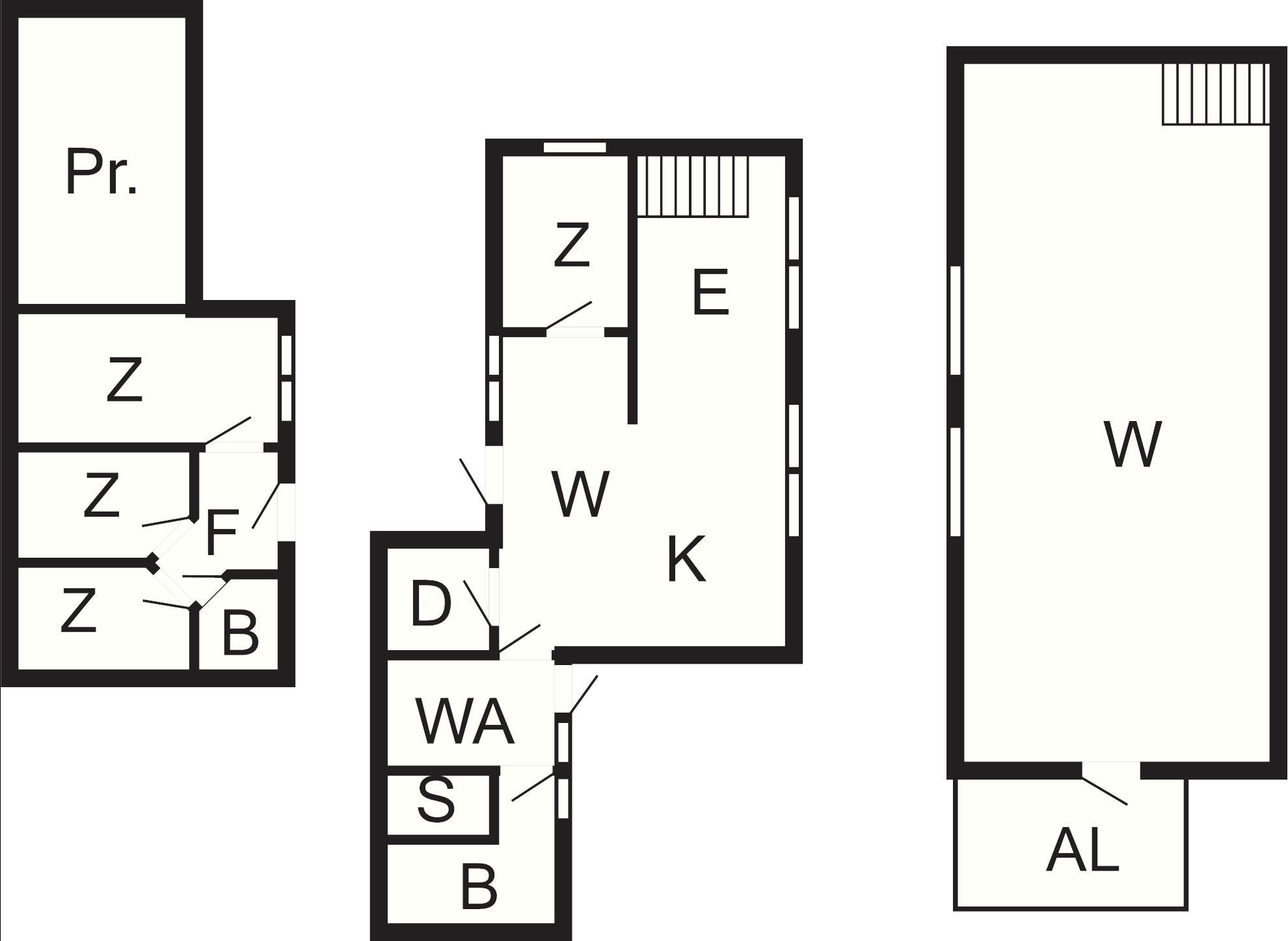 Im Nebenhaus finden Sie drei Schlafzimmer und ein Bad mit