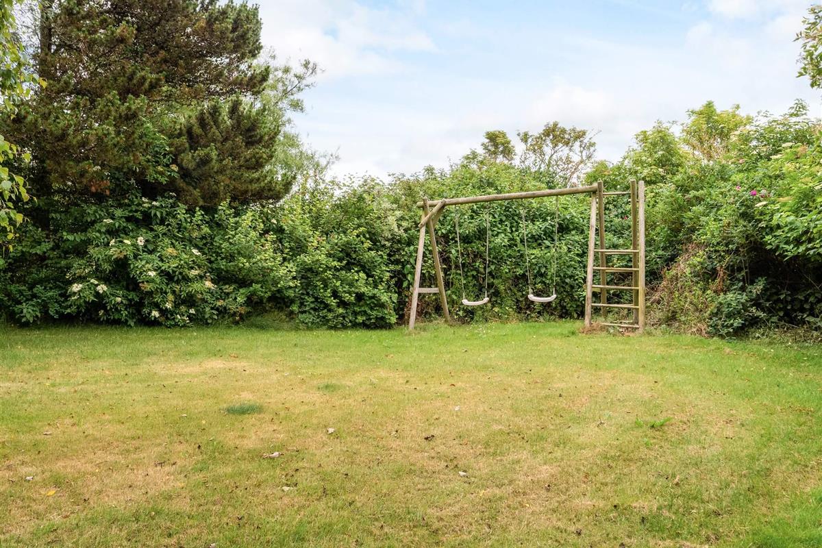 Draußen lädt das große Grundstück zum Spielen, Entspannen und Genießen der Natur ein, während der Fjordblick die perfekte Kulisse für einen ruhigen Morgenkaffee oder einen sonnigen Nachmittag auf der Terrasse bietet.