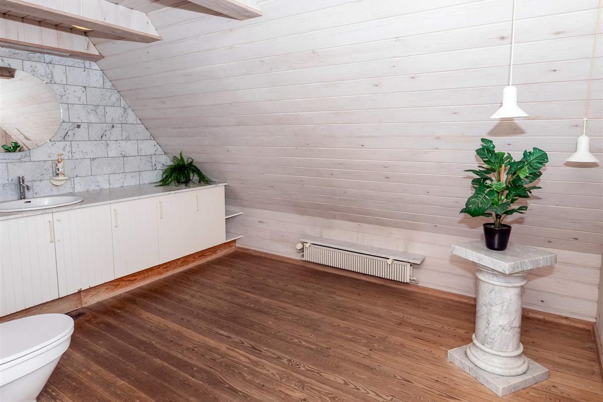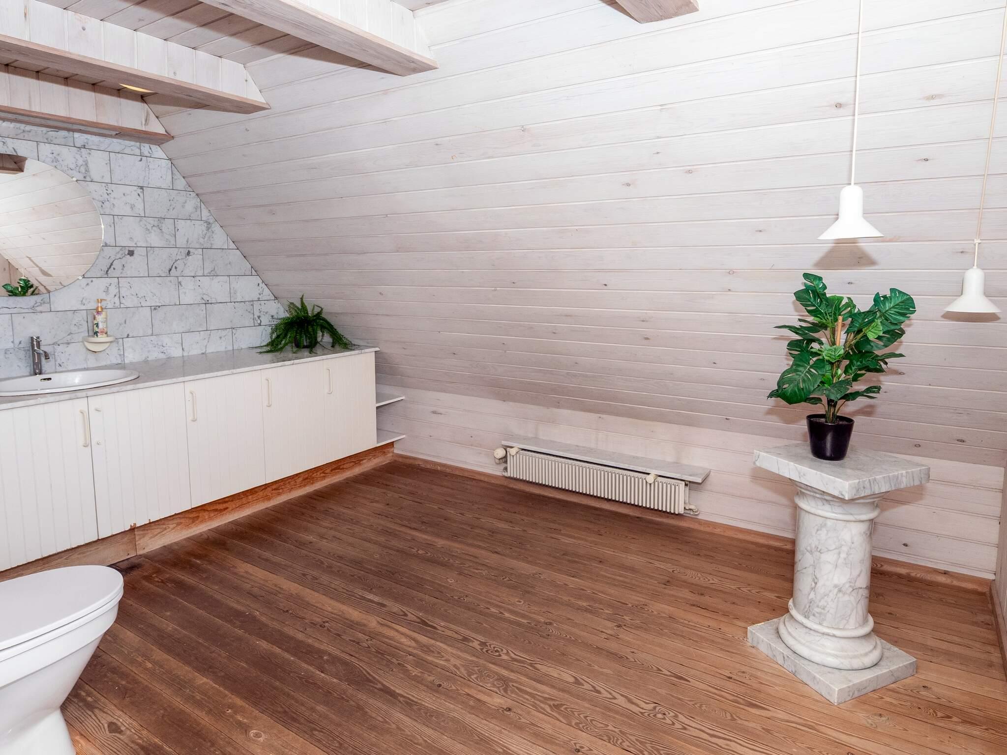 3 Bäder: 1 mit WC, Waschbecken und Duschkabine mit Zugang zur Sauna, 1 mit WC, Waschbecken und Badewanne und 1 Gäste-WC