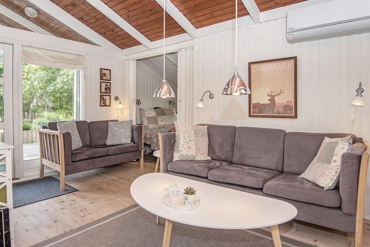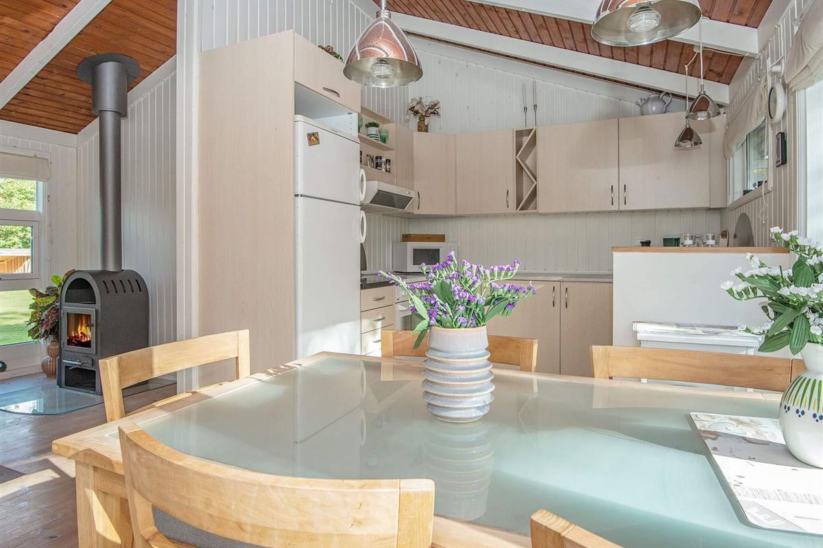 In Jegum finden Sie dieses gemütliche und einladende Ferienhaus, umgeben von Bäumen auf einem komplett eingezäunten Gartengrundstück. Große Fenster und ein schräges Dach lassen viel Tageslicht in den Innenraum und schaffen eine helle und luftige Atmosphäre. Gäste können die Ruhe, die Wärme des Holzofens oder das sanfte Rauschen des Windes in den Baumwipfeln genießen.
