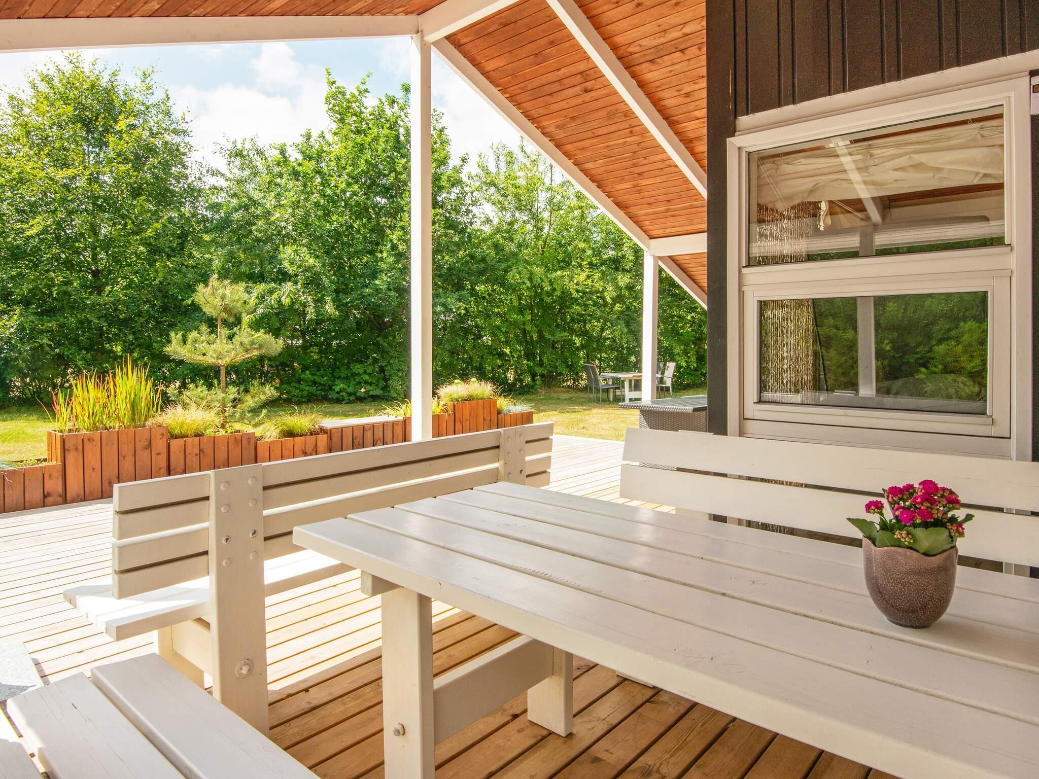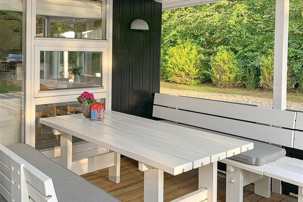 1 Außenbereich: Gartenmöbel, Liegestühle, Holzkohlegrill, Indhegnet grund, Terrasse, Overdækket Terrasse