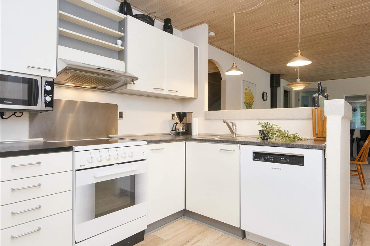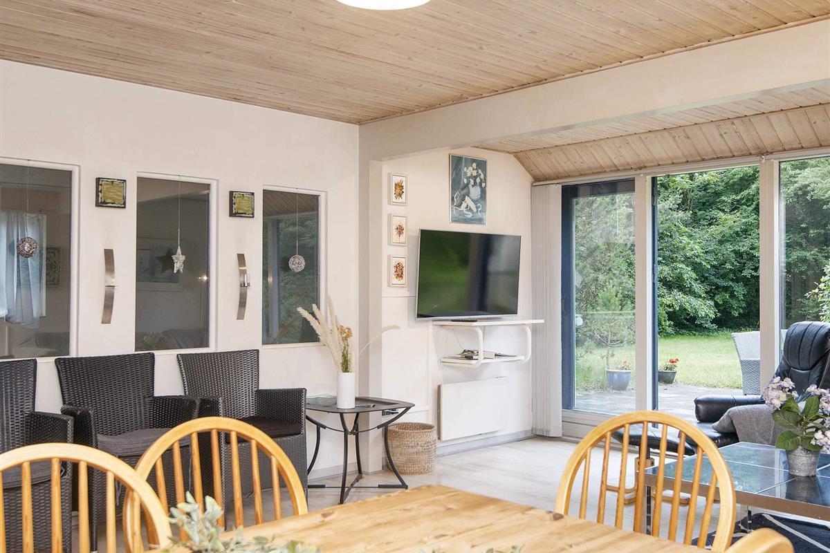 Das Ferienhaus verfügt über ein geschmackvoll eingerichtetes Wohnzimmer, das offen mit Essecke und Küche kombiniert ist. Neben der Küche befindet sich ein praktischer Hauswirtschaftsraum mit Arbeitsfläche. Es gibt einen Smart-TV im Haus mit App zum Streamen.