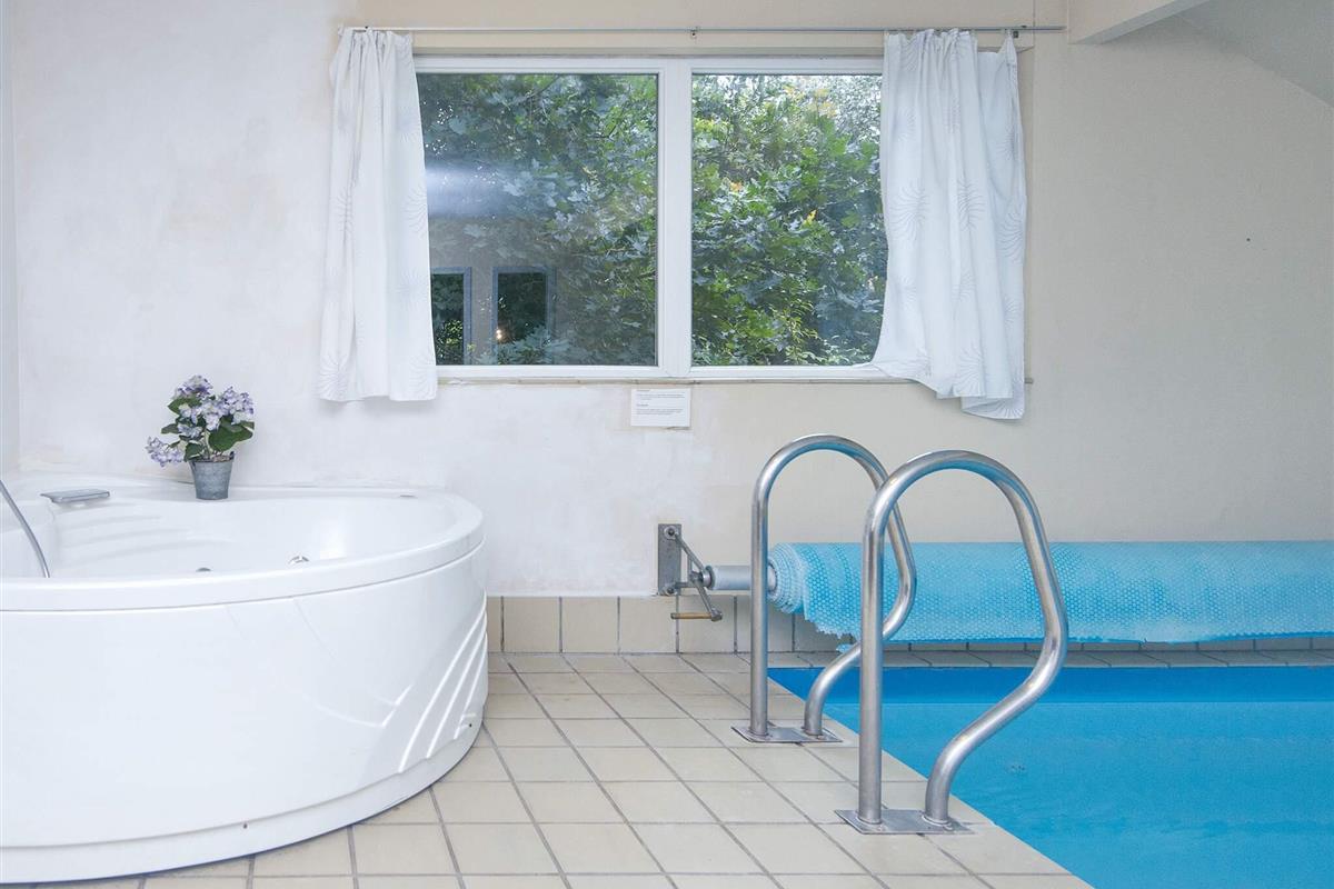 Geräumiges Poolhaus mit Whirlpool und Sauna für Wellness und Entspannung. Es liegt auf einem großen, teilweise abgegrenztem Naturgrundstück bei Jegum, teils abgeschirmt und mit Rutsche, Schaukeln und Sandkasten für die Kleinen.