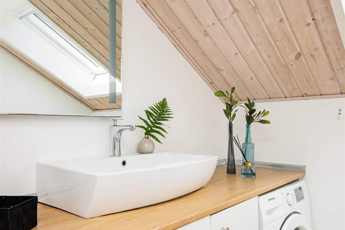 Das Herzstück des Hauses ist der offen kombinierte Küchen- und Aufenthaltsraum, darüber hinaus gibt es noch vier Schlafzimmer, eine Gästetoilette und ein Badezimmer. Kombinierte Waschmaschine/Trockner.