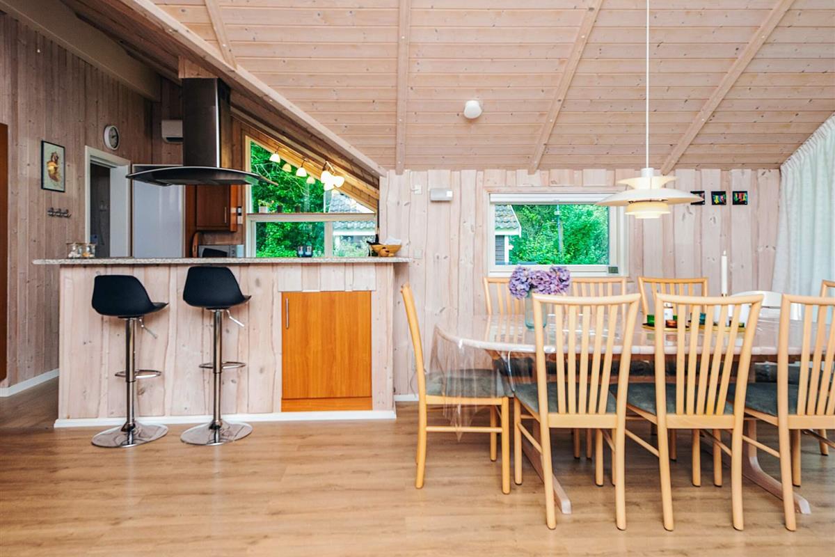 Dieses schöne Ferienhaus von 2005 liegt auf einem wirklich gut gepflegten Grundstück. Die unglaublich schöne und gut ausgestattete Küche liegt in offener Verbindung mit dem gemütlichen Wohnzimmer mit Kaminofen. In Verbindung mit der Küche ist eine kleine Bar-Abteilung, wo man mit einem Glas Wein gemütlich sitzen kann und mit denen in der Küche plaudern kann oder die Kinder können malen, während die Mutter oder der Vater das Essen zubereitet. 3 wirklich schöne Schlafzimmer und ein richtig schönes Badezimmer mit Whirlpool machen dieses Ferienhaus perfekt für eine Familie mit Kindern. Nicht zuletzt bietet der Rasen mit Fussballtoren viele Möglichkeiten für Spiel und Spass. Gemütliches Ferienhaus in Jegum! Endreinigung ist im Preis enthalten!