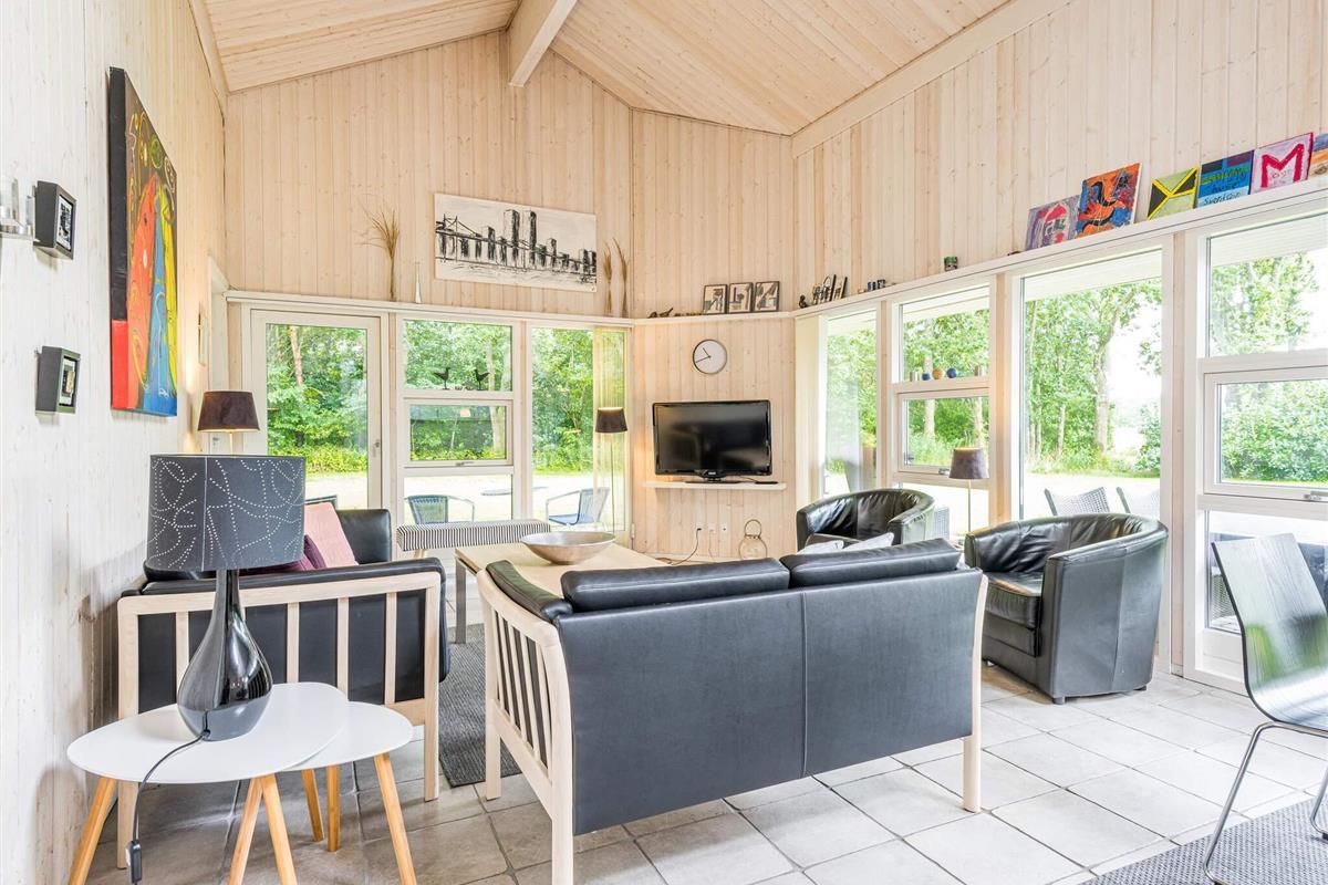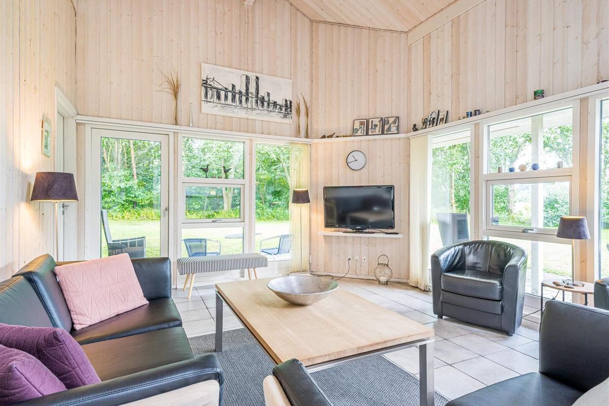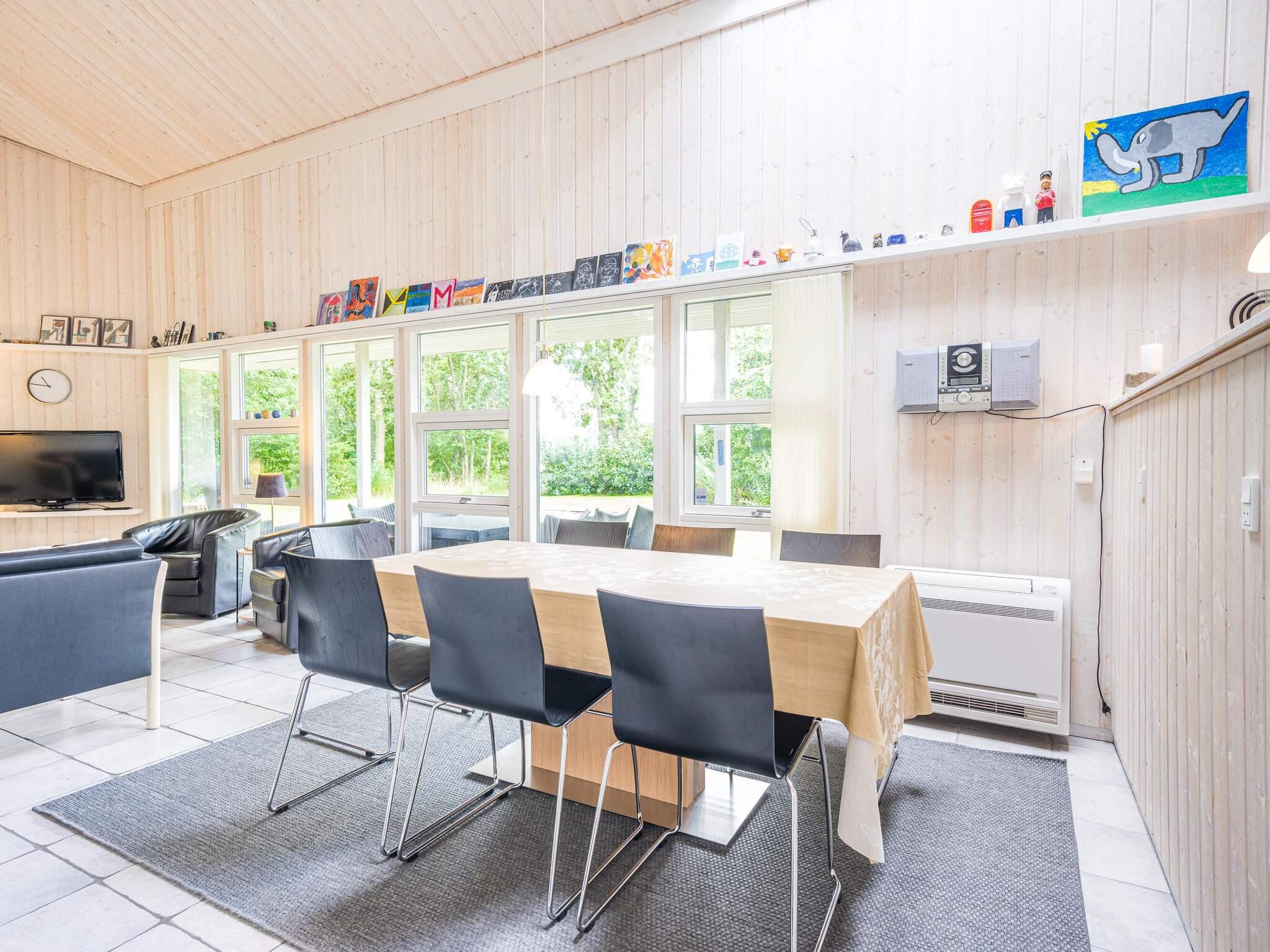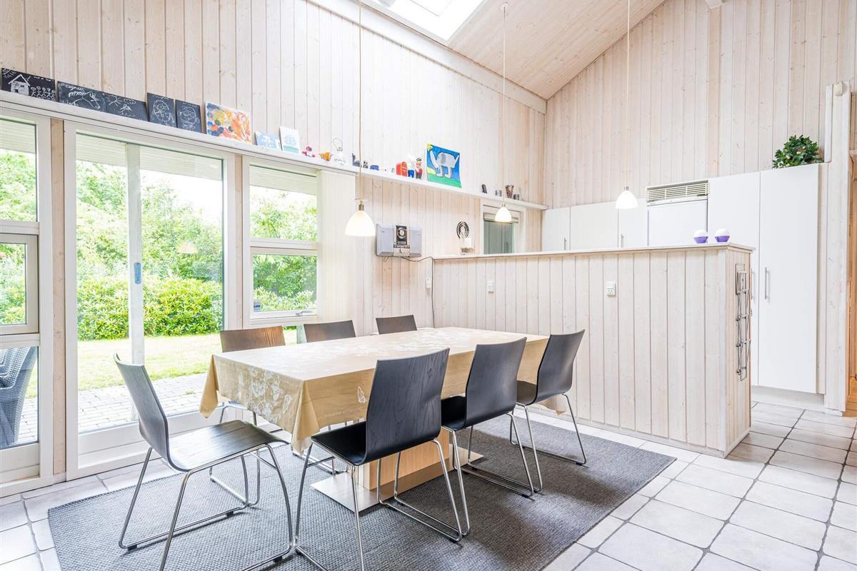 Das Ferienhaus ist geschmackvoll eingerichtet mit einem hellen, offenen Wohnbereich, in dem Küche, Essplatz und Wohnzimmer harmonisch ineinander übergehen. Hier kann die ganze Familie Zeit miteinander verbringen – beim Kochen, Spielen oder Entspannen vor dem Fernseher. Der Esstisch steht zentral, sodass gemeinsame Mahlzeiten und Geselligkeit im Mittelpunkt stehen.