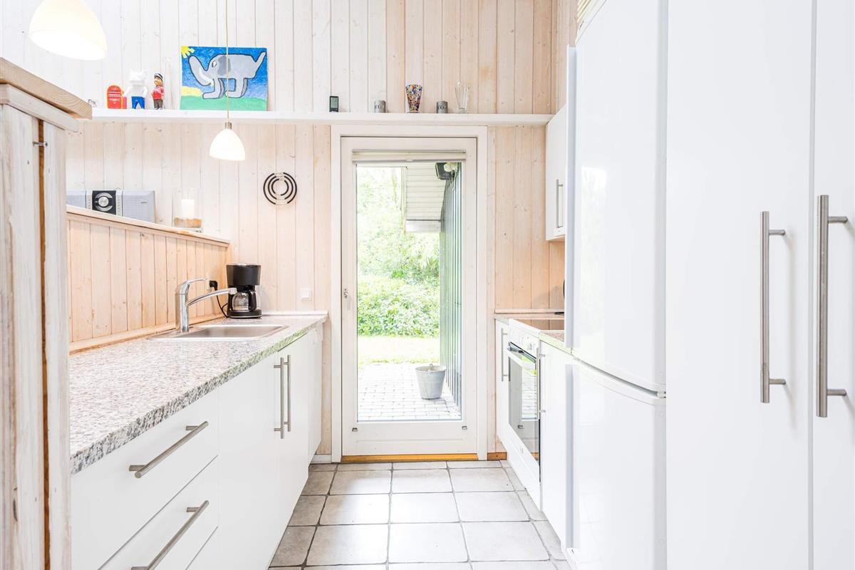 Vom gut ausgestatteten Küchenbereich gelangt man direkt auf die schöne Terrasse, auf der Sie Ihren Morgenkaffee genießen, abends grillen oder einfach den Blick über den großen Garten schweifen lassen können – ideal für Spiel und Spaß mit der ganzen Familie.