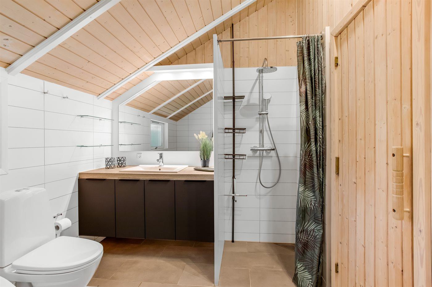 Er is 1 badkamer met douchehok en 1 toilet.. Er is vloerverwarming in 1 badkamer. De sauna biedt de gelegenheid tot ontspanning.