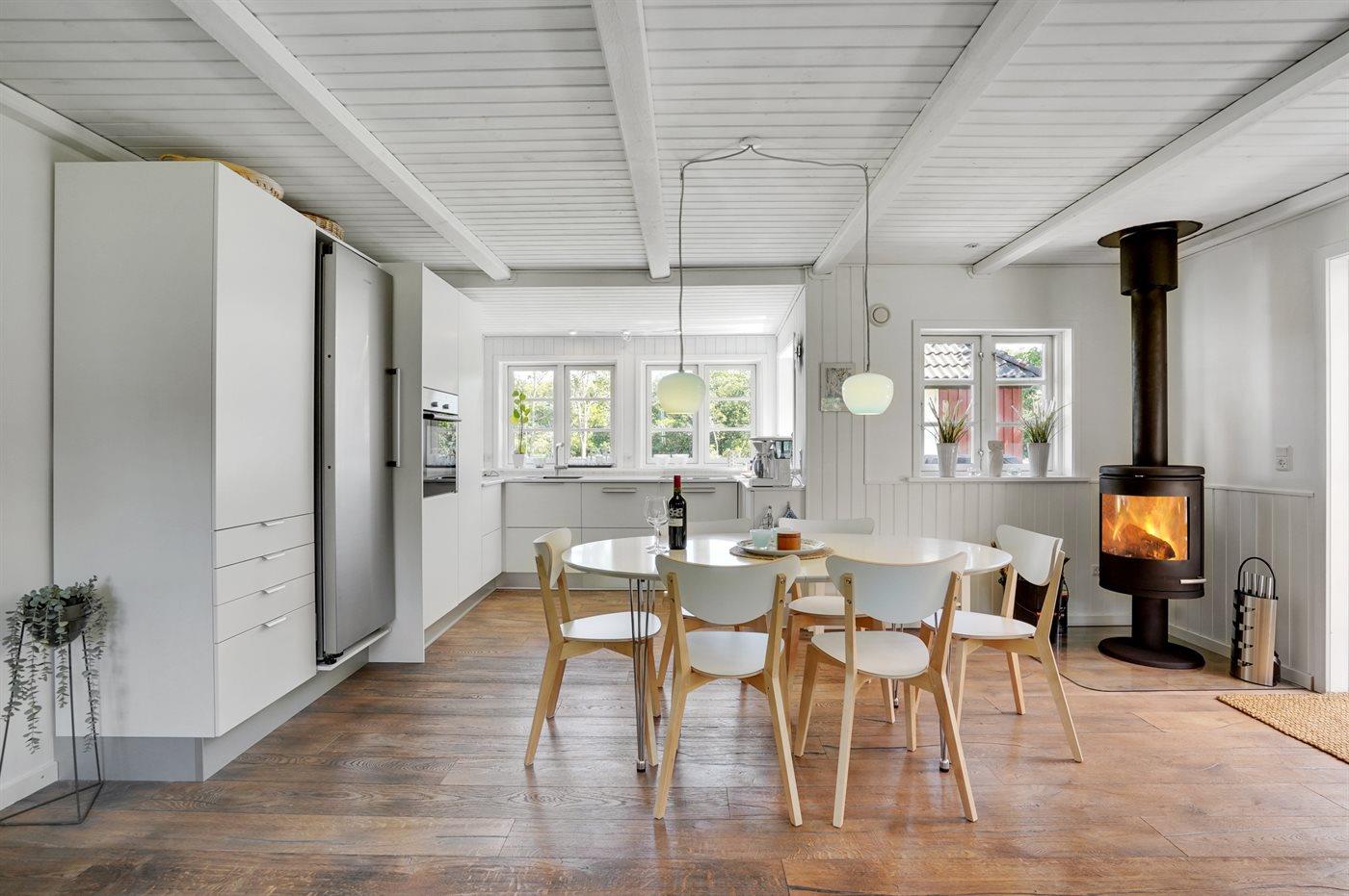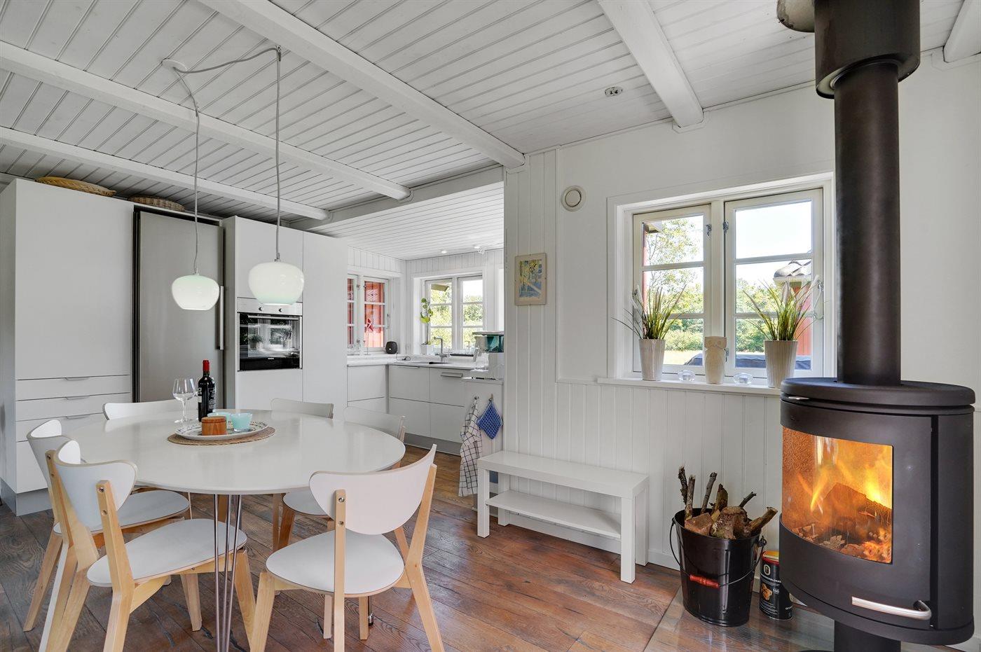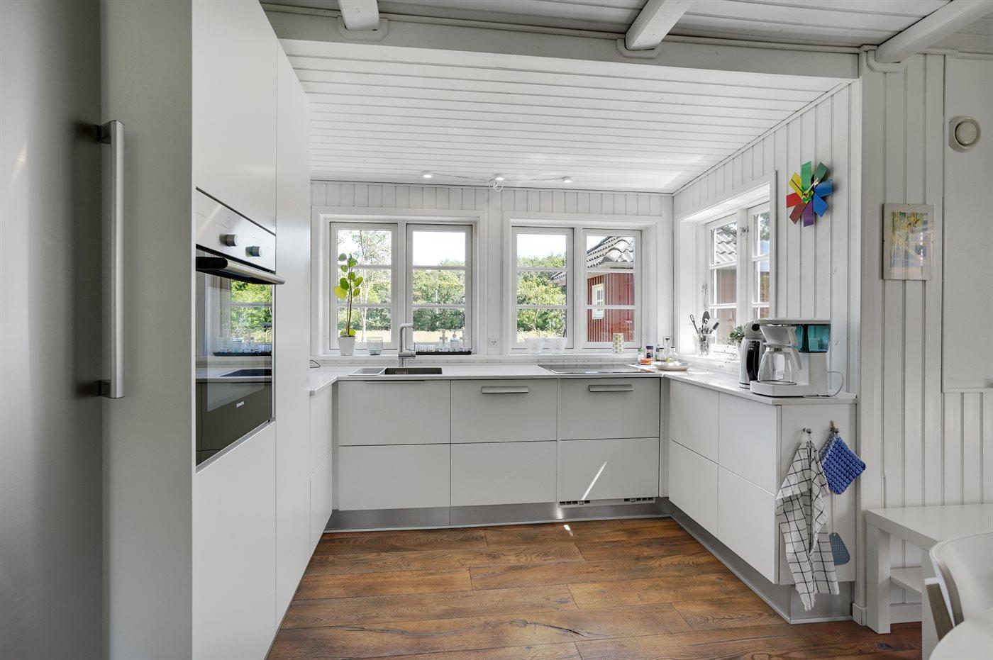 De keuken is uitgerust met koelkast Er is 4 inductiekookplaten, heteluchtoven, magnetron en vaatwasser.