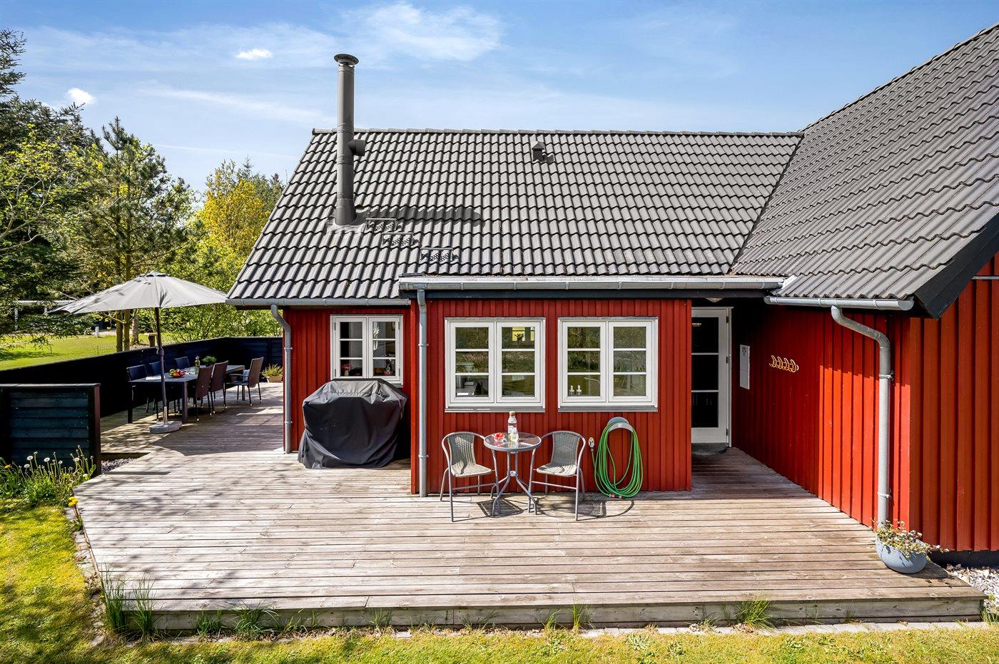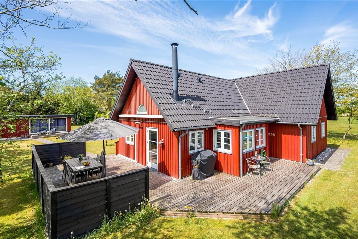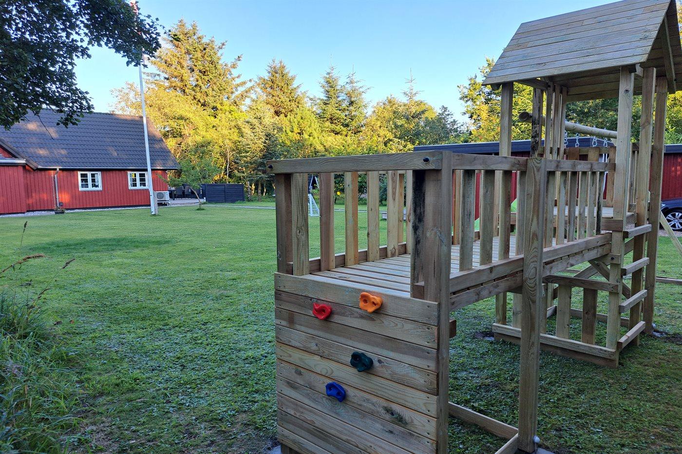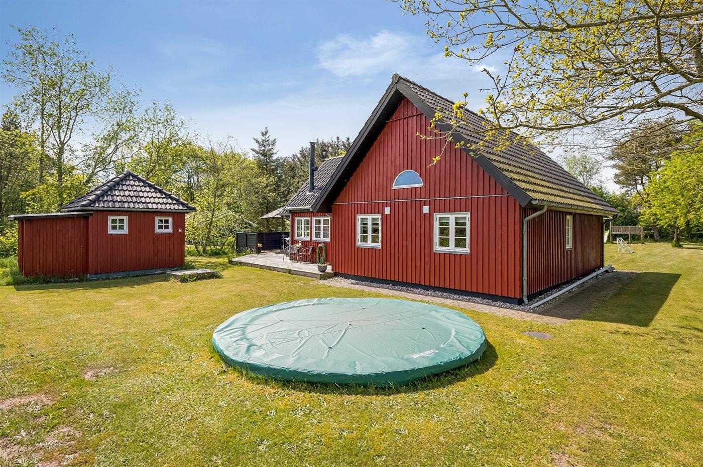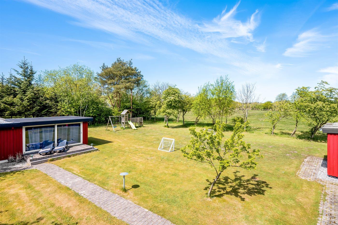 Ruim vakantiehuis met sauna, speelruimte en elektrische laadpaal in Oksbøl, Denemarken.