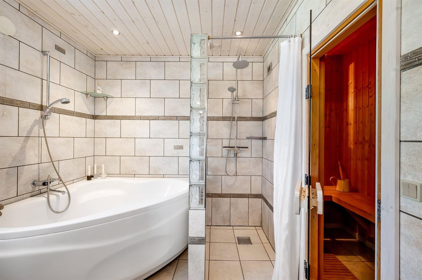 Er is 2 badkamers met douchehok en 2 toiletten. Er is vloerverwarming in 2 van de badkamers. De sauna biedt de gelegenheid tot ontspanning.
