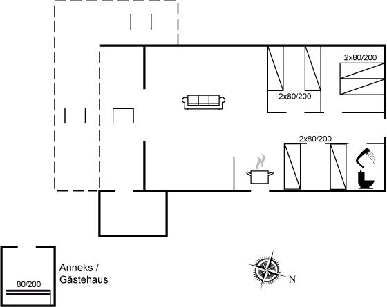 Er zijn in totaal 4 slaapkamers. De slaapplaatsen zijn als volgt verdeeld: 2 slaapplaatsen in tweepersoonsbed. 4 slaapplaatsen in eenpersoonsbedden. 2 slaapplaatsen in stapelbed. 2 van deze slaapplaatsen bevinden zich in de bijgebouw.