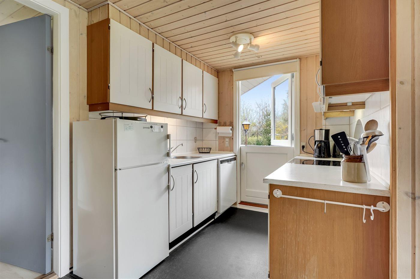De keuken is uitgerust met koelkast Er zijn 4 keramische kookplaten, heteluchtoven en vaatwasser.