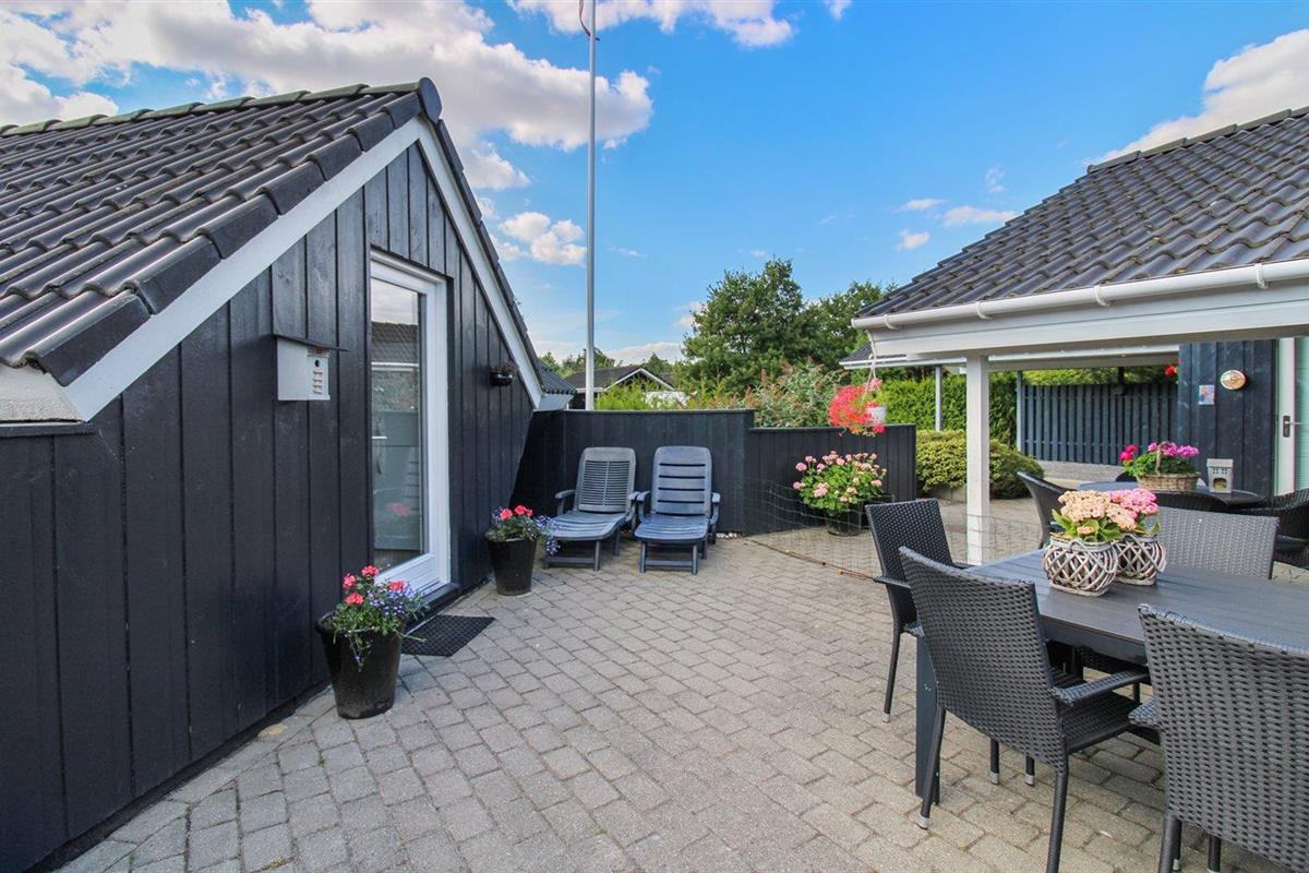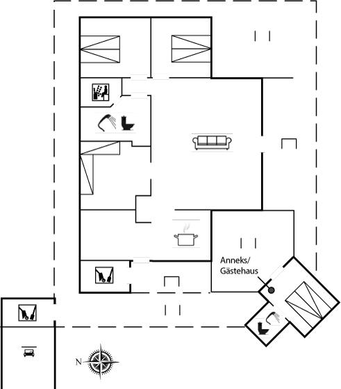 De vakantiewoning is gelegen op een 1648 m² groot natuural grond. Afstand tot de zee 10500 m. Dichtstbijzijnde winkel 300 m. Bij de vakantiewoning hoort 75 m² terras. Daarnaast is er een 25 m² groot overdekt terras. Gereedschapsruimte. Zandbak. Carport ter beschikking.