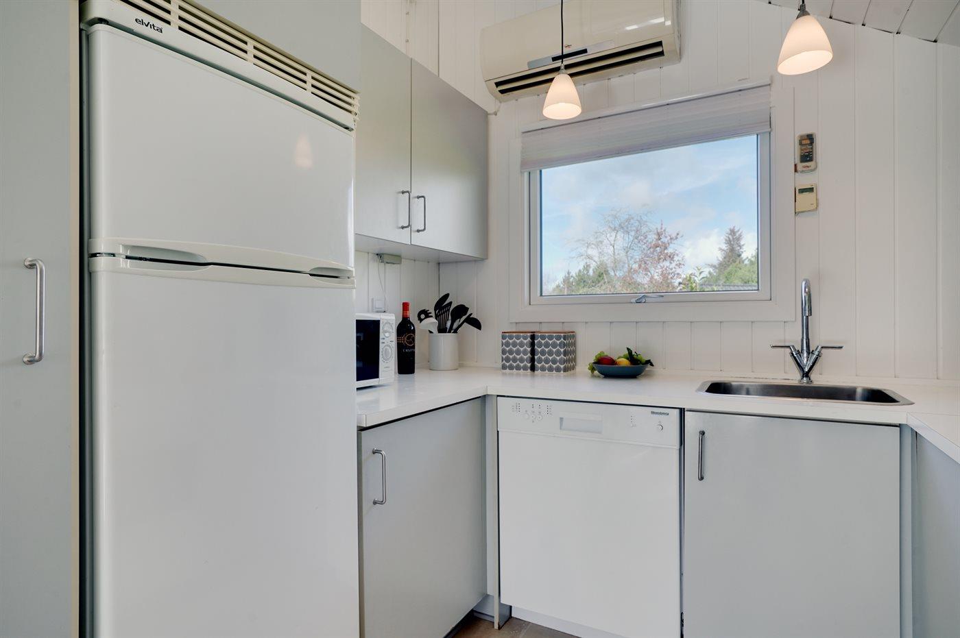 De keuken is uitgerust met koelkast Er zijn 4 keramische kookplaten, heteluchtoven, magnetron en vaatwasser.