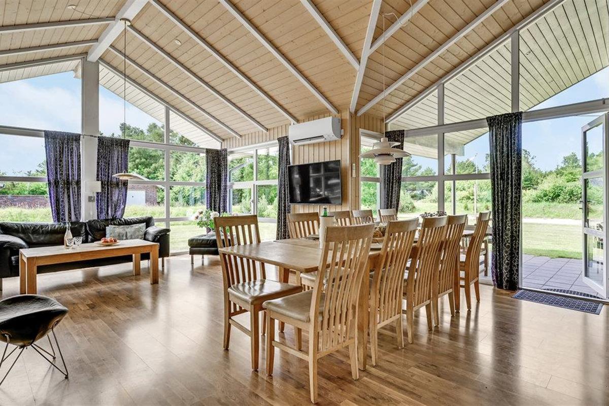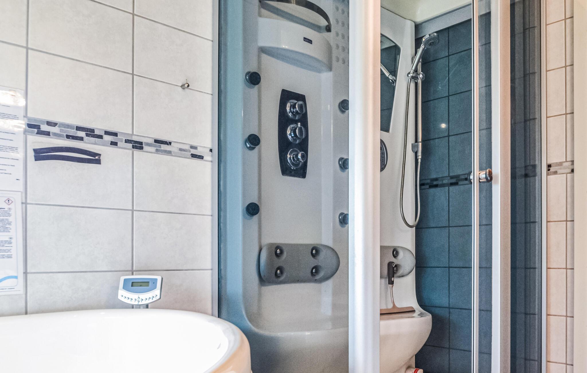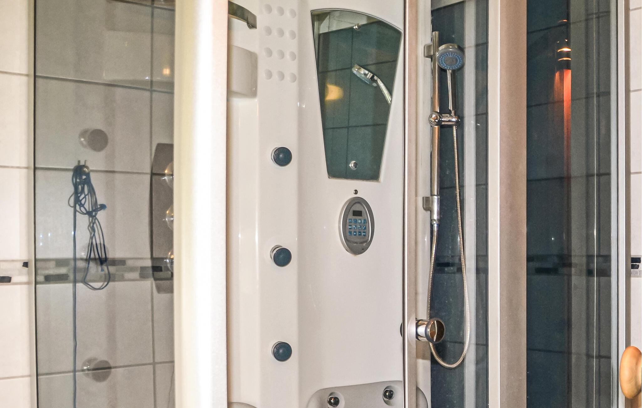 Dit ruime vakantiehuis ligt op een omheind natuurterrein in Jegum Ferienland, dat met zijn speeltuin, minigolfbaan, springkussen en tennisbanen zeer geschikt is voor gezinnen met kinderen. Het is smaakvol ingericht en beschikt over een whirlpool en sauna. De woonkamer, die open is naar de keuken en een houtkachel en airconditioning heeft, biedt een prachtig uitzicht op het terrein. De keuken is uitgerust met veel huishoudelijke apparaten. Er zijn buitenactiviteiten in de tuin, zoals een beachvolleybalveld. U kunt uw auto parkeren in de carport.