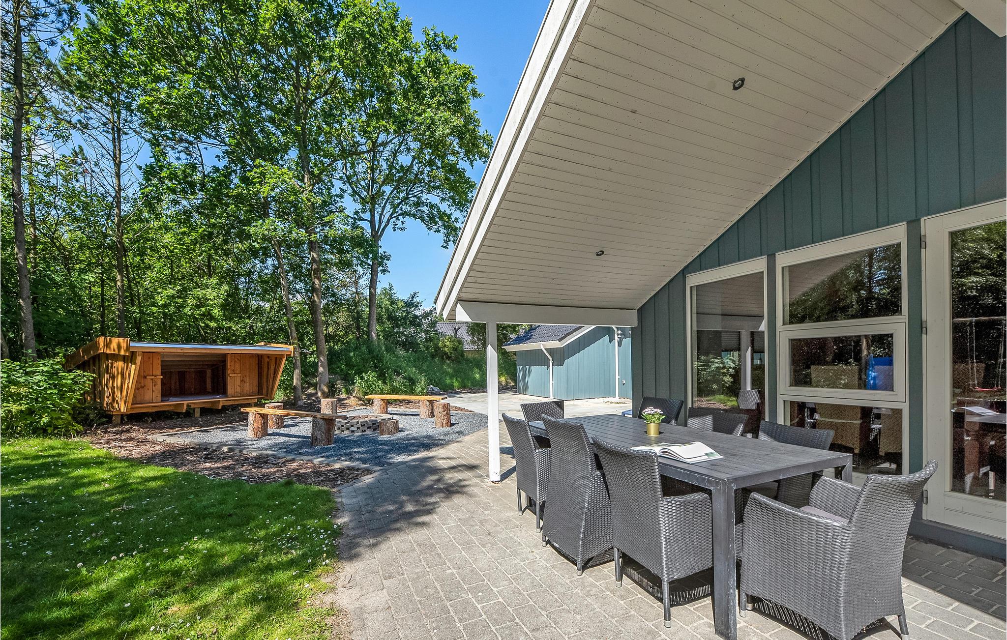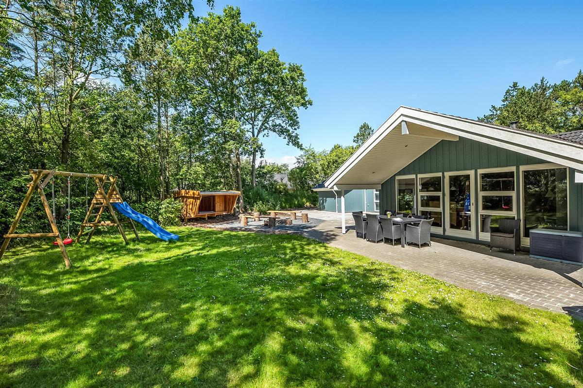 Vakantiehuis op een uitstekende locatie, zeer geschikt voor het grote gezin. Vanuit de keuken-woonkamer met houtkachel, die zeer centraal in het huis is geplaatst, heeft u toegang tot een grote badkamer met zeewaterwhirlpool en sauna. Van hieruit heeft u ook toegang tot verschillende gedeeltelijk overdekte terrassen en een ongestoorde zonnetuin. Zeer centraal gelegen, lichte keuken met alle apparatuur. Op het terrein is een bijgebouw met vier slaapplaatsen, geschikt voor jongeren die hier ongestoord kunnen vertoeven. Op het terrein zijn ook schommels, een zandbak en glijbanen voor de kleintjes, de volwassenen kunnen vanaf het grote terras met barbecue de activiteiten van de kinderen gadeslaan. In het huis is een alarmsysteem geïnstalleerd.