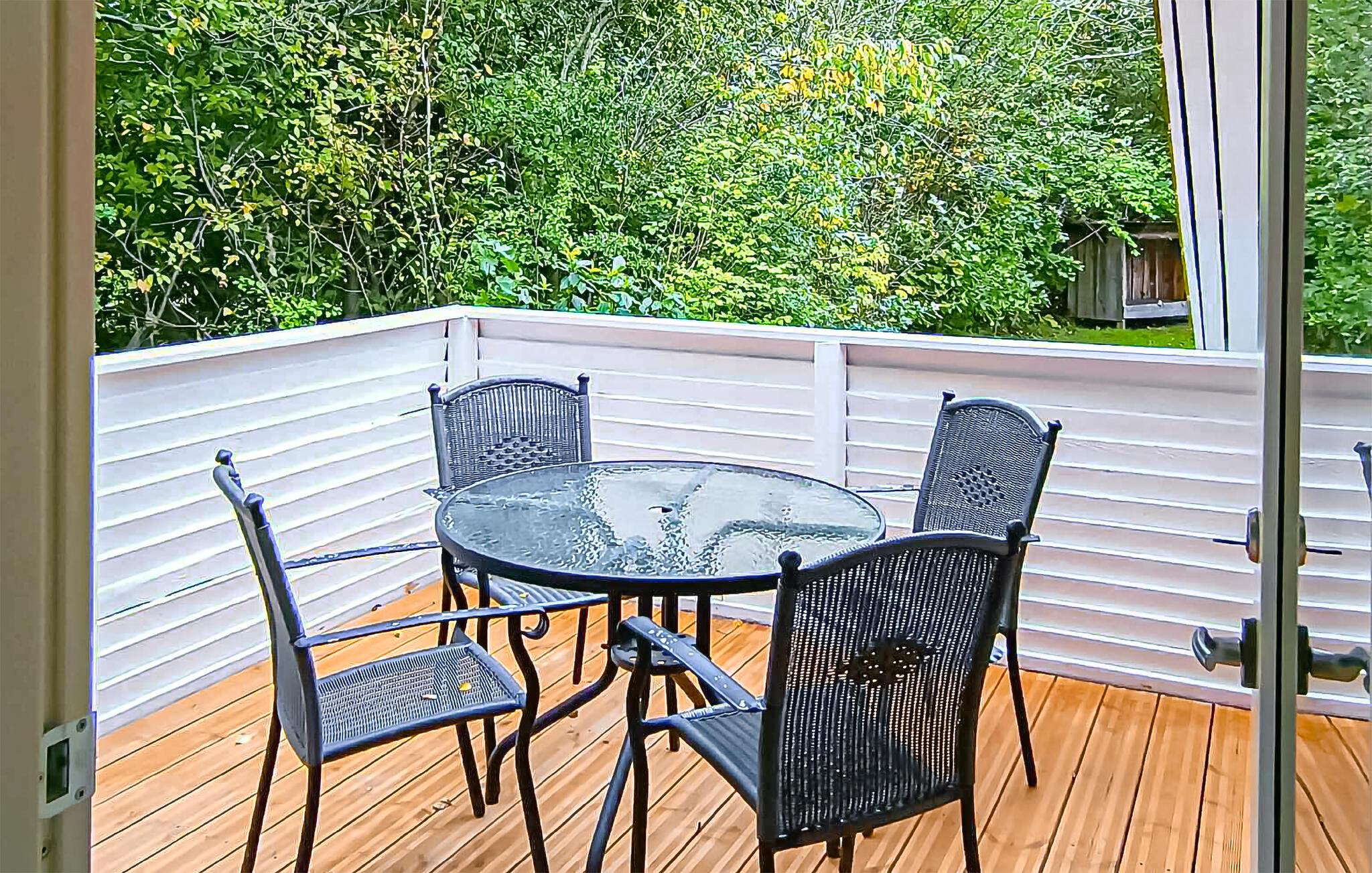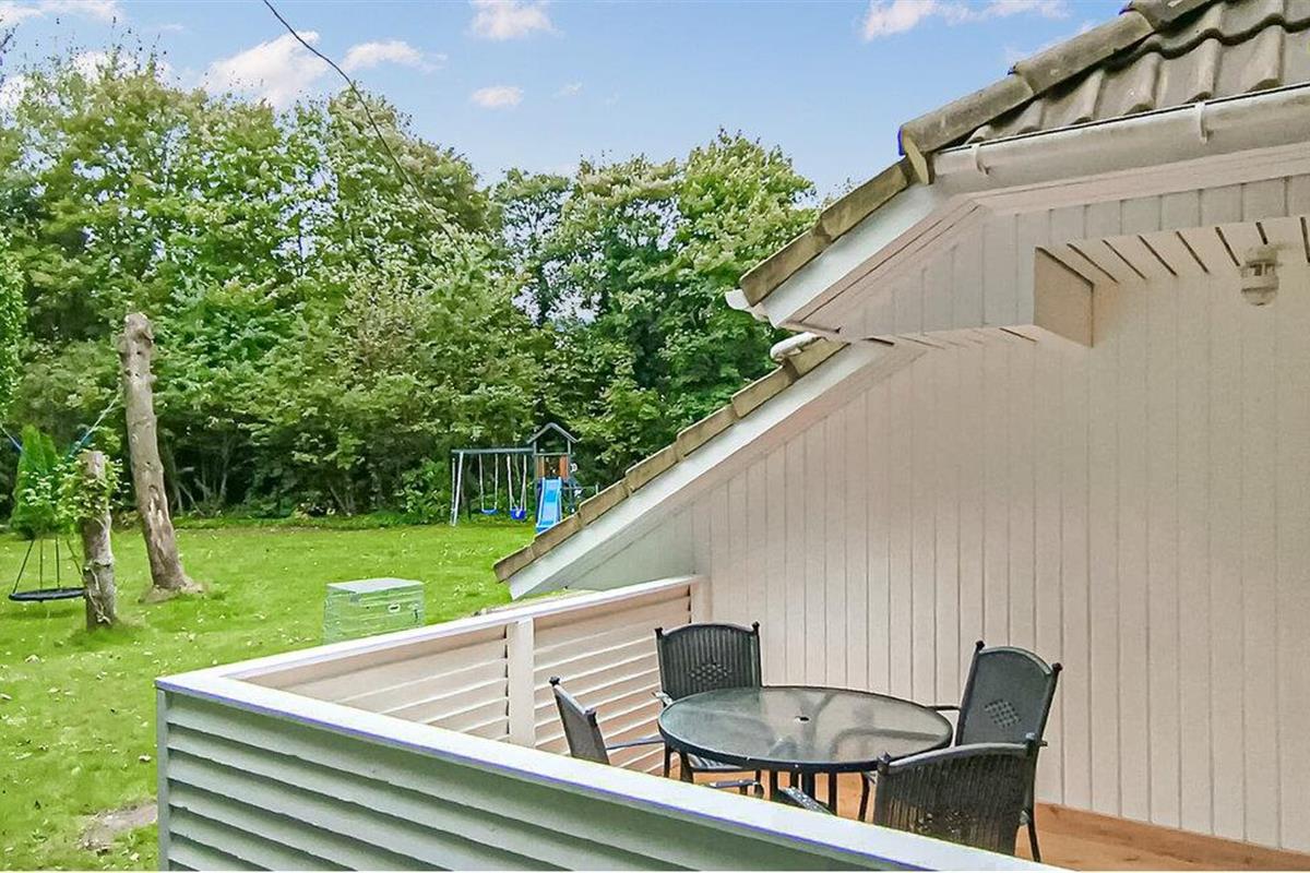 Vanuit de keuken/woonkamer heb je direct toegang tot het betegelde terras en het omheinde ochtendterras. Rondom het hele huis zijn verschillende terrassen aangelegd die zon en heerlijke uren in de beschutting van de wind bieden. In de tuin is een afdak geplaatst en bij de vuurplaats kun je het gezellig maken.