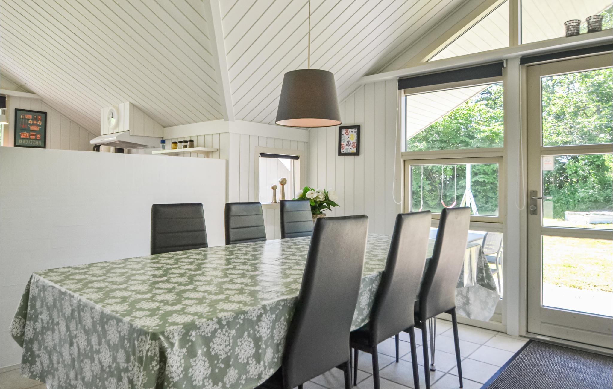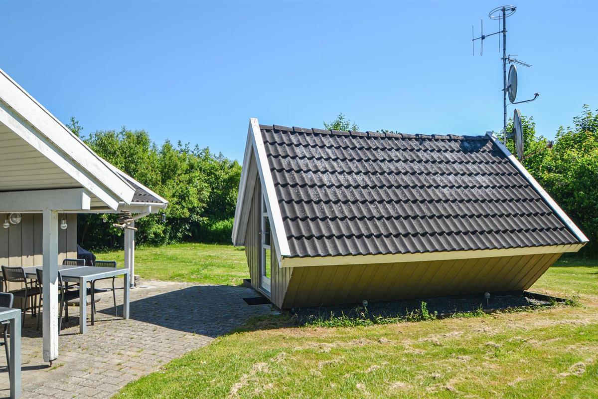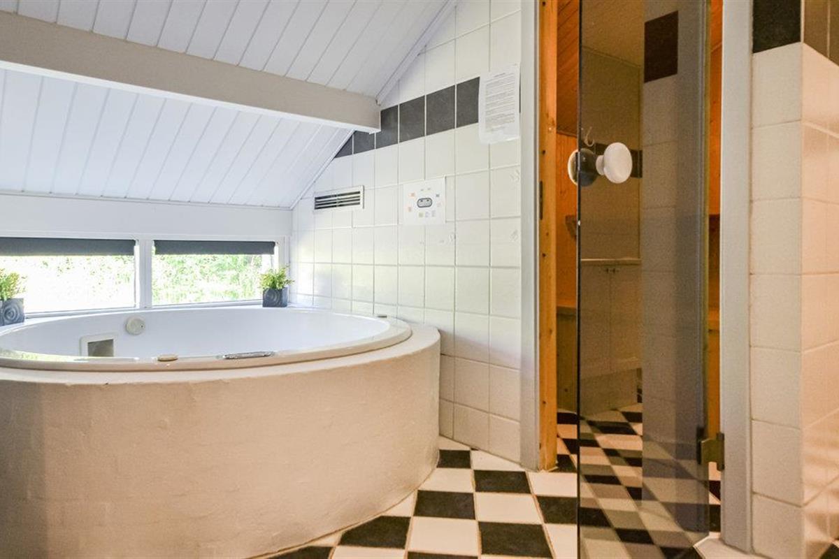 Mooi en groot vakantiehuis met whirlpool, sauna en gebouwd met goede materialen. Het is ingericht met een woonkamer open naar de keuken met een houtkachel, waar de familie het zich echt comfortabel kan maken. Van hieruit heeft u toegang tot verschillende gedeeltelijk overdekte terrassen. Het huis ligt op een afgesloten natuurgrondstuk niet ver van een groter activiteitencentrum met springkussens, tennisbanen, restaurants en winkelmogelijkheden. Het is een goede uitvalsbasis voor uitstapjes in de omgeving. U kunt hier zeker een leuke vakantie doorbrengen. Bezienswaardig in de buurt is het Tirpitz Museum over de Tweede Wereldoorlog. Daar is ook een collectie barnsteen te zien.