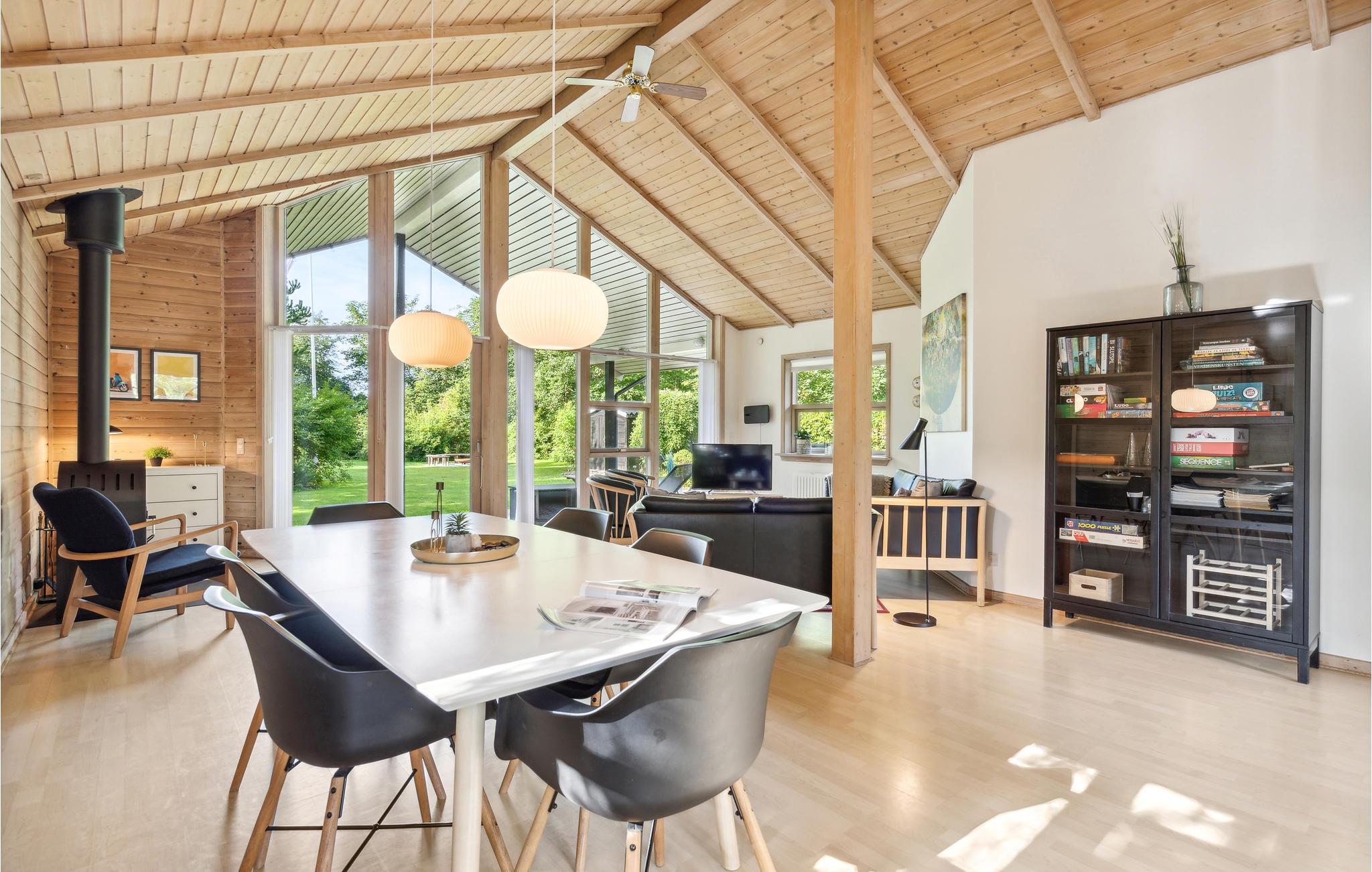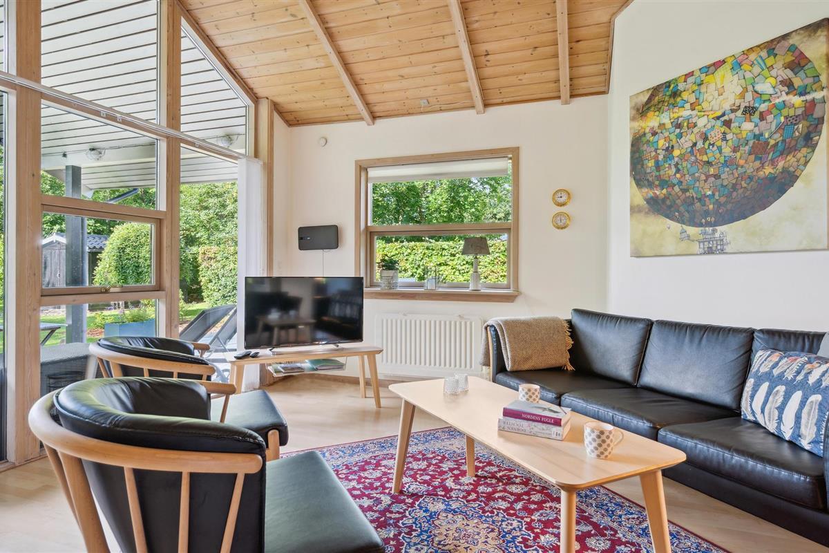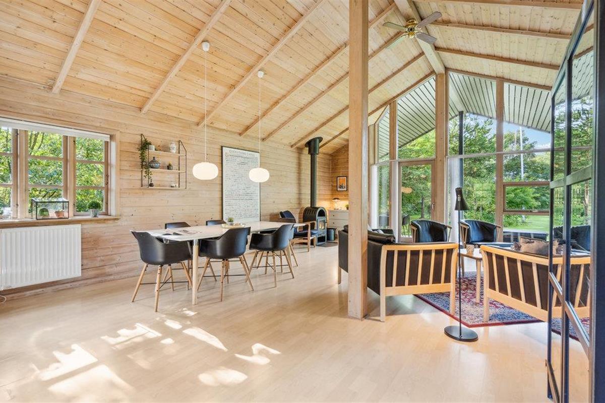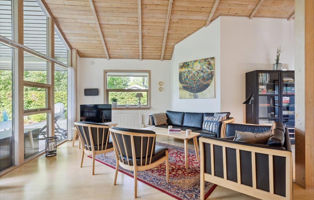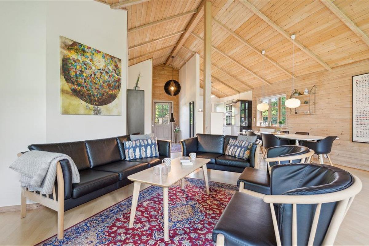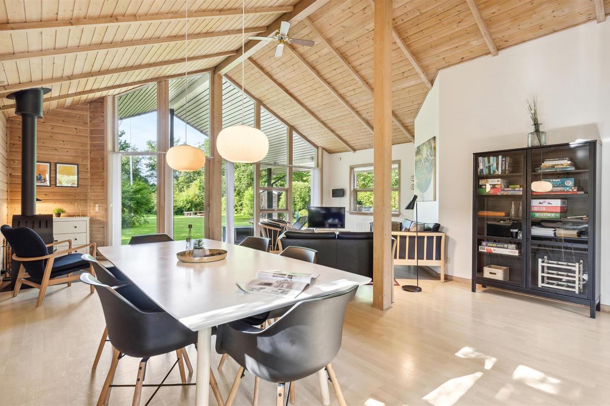 Zeer gezellig en bijzonder houten vakantiehuis op een groter, omheind en ongestoord perceel met een in de grond verankerde trampoline. Mooie, ruime keuken-woonkamer met uitgang naar het gedeeltelijk overdekte terras, waar u tot laat in de avond na het vallen van de dauw kunt zitten. In de grote badkamer met vloerverwarming kunt u heerlijk ontspannen in de whirlpool. Er zijn drie slaapkamers - twee daarvan zijn uitgerust met tweepersoonsbedden, één met eenpersoonsbedden. Er is een warmtepomp en een houtkachel om de energiekosten laag te houden. Het huis ligt aan het einde van een grindweg met zeer weinig verkeer. Korte wandeling naar de activiteiten en het winkelcentrum in het dorp.